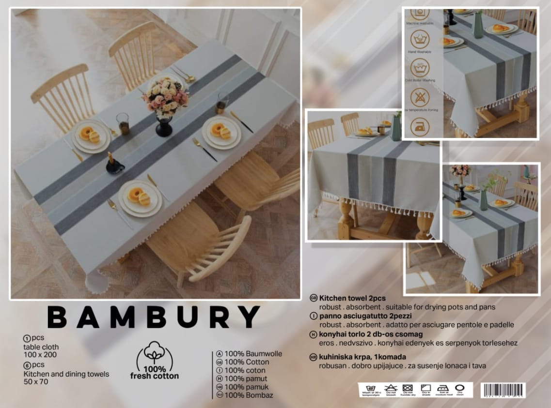 كريم للمفروشات بيعرض مفارش طاولة من قطن وبولىستر مقاوم للبقع بطباعة رقمية ثابتة اللون. النقوش هندسية وزهرية بسيطة تناسب الديكور الكلاسيك والمودرن. المقاسات متوفرة للترابيزات الدائرية والمستطيلة، ومعاها رانرات ومناديل قماش بنفس التصميم عشان الإطلالة تبقى كاملة.