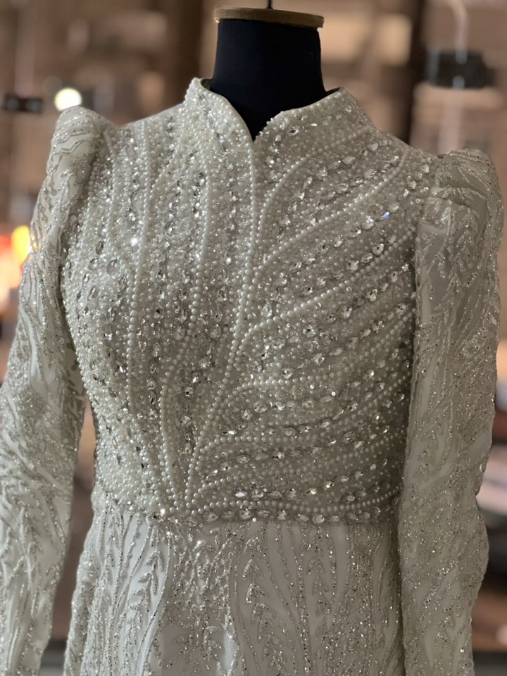 ولو عندك موديل معين في بالك أو صورة نفسك تنفذيها، الأتيليه عنده مرونة كبيرة. ممكن يعدلوا الموديلات الجاهزة أو يعملوا تصميم خاص ليكي من البداية. ساعات لمسة بسيطة زي تغيير فتحة الرقبة، أو إضافة كمّ شيفون، أو شغل يدوي مطرز بيخلي الفستان مختلف تمامًا وكأنه معموله مخصوص ليكي. وده بيخلي كل عروسة تحس إنها مميزة بفستان فريد بيعبر عنها هي.