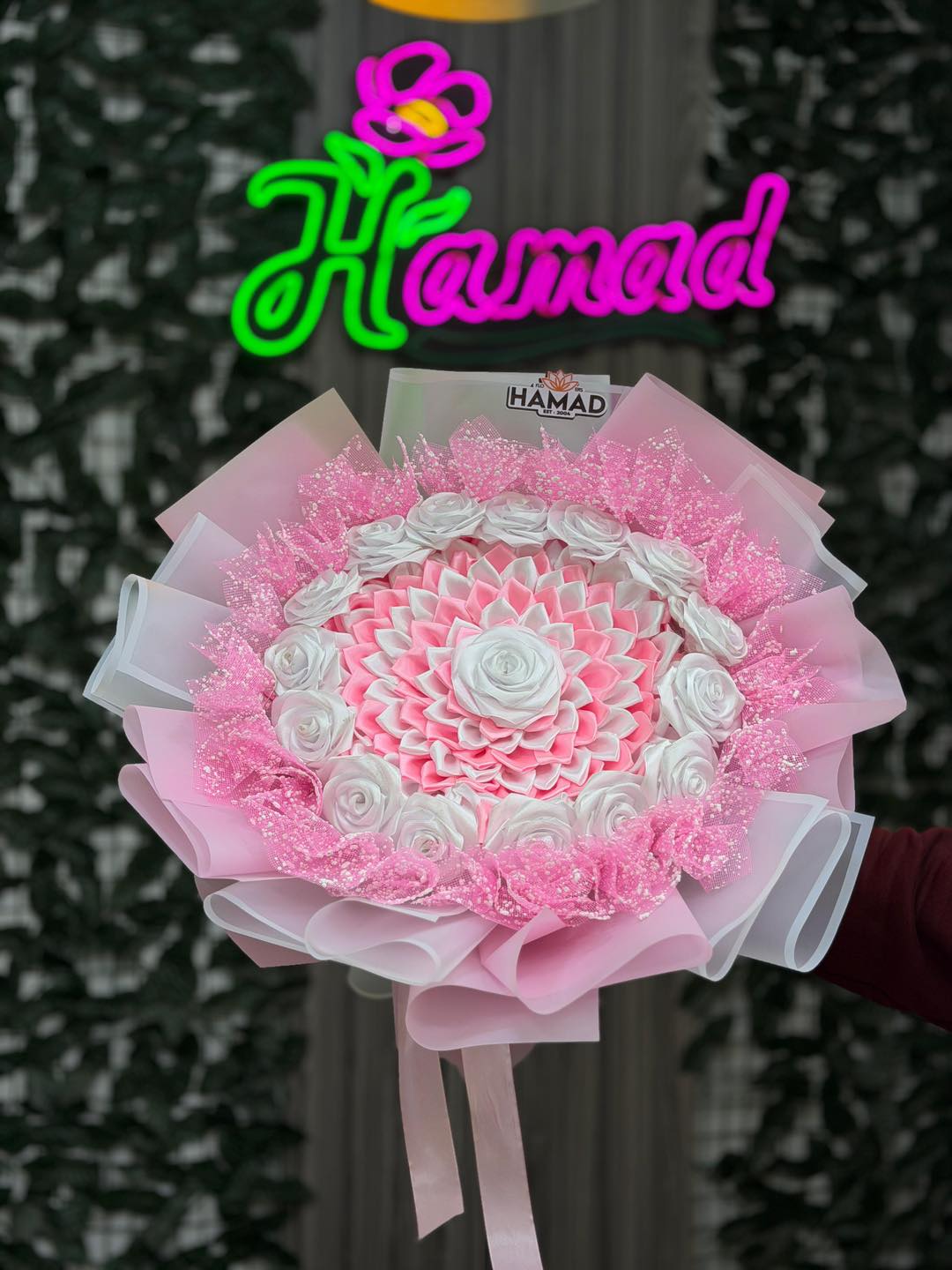 الخبرة في تجهيز الزهور واضحة في كل شغل بيطلع من Hamad Flowers، من اختيار الورد لحد التنسيق النهائي. كل خطوة بتتعمل باهتمام علشان النتيجة تكون باقة مرتبة تعبر عن المناسبة بشكل واضح وبسيط.