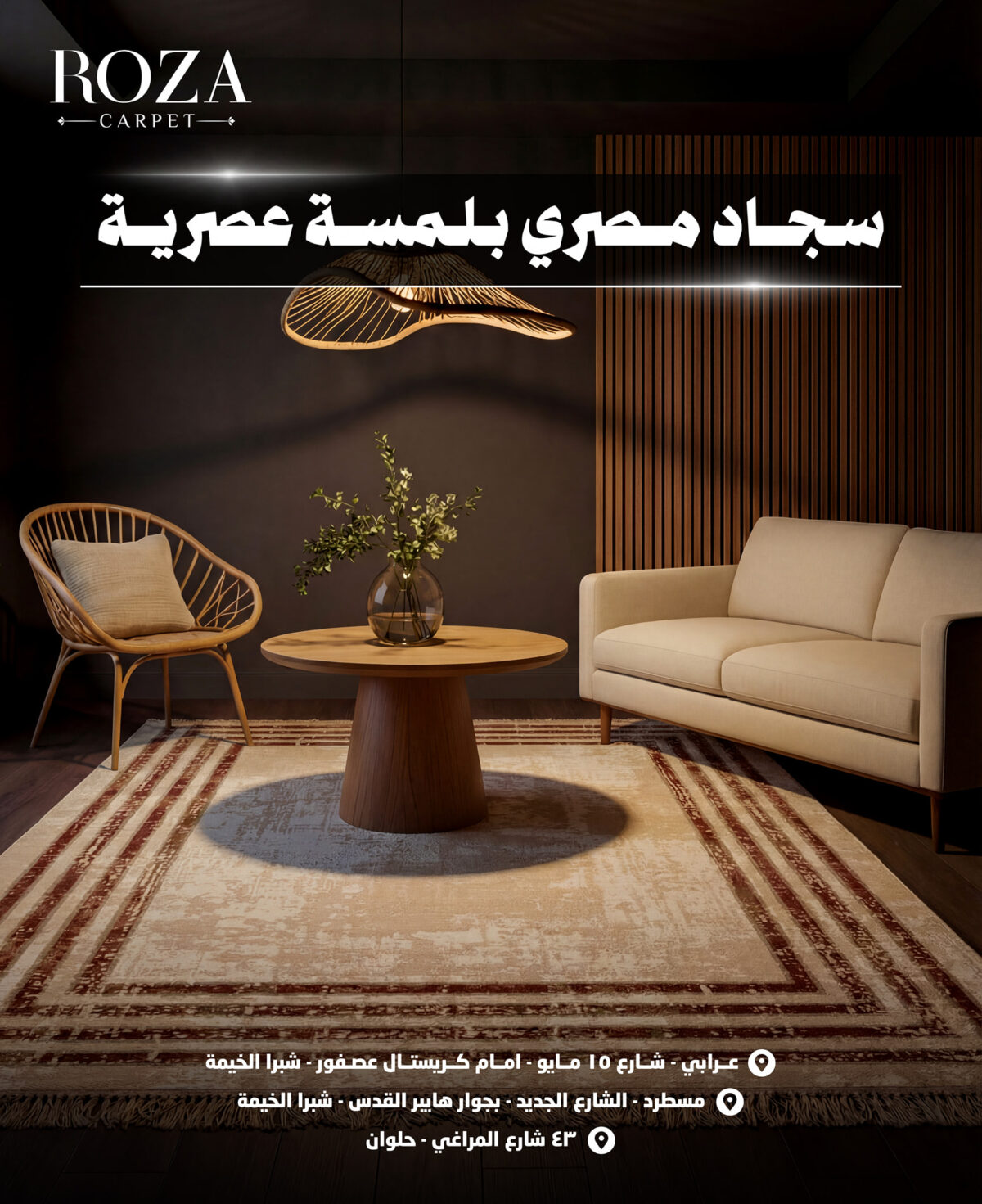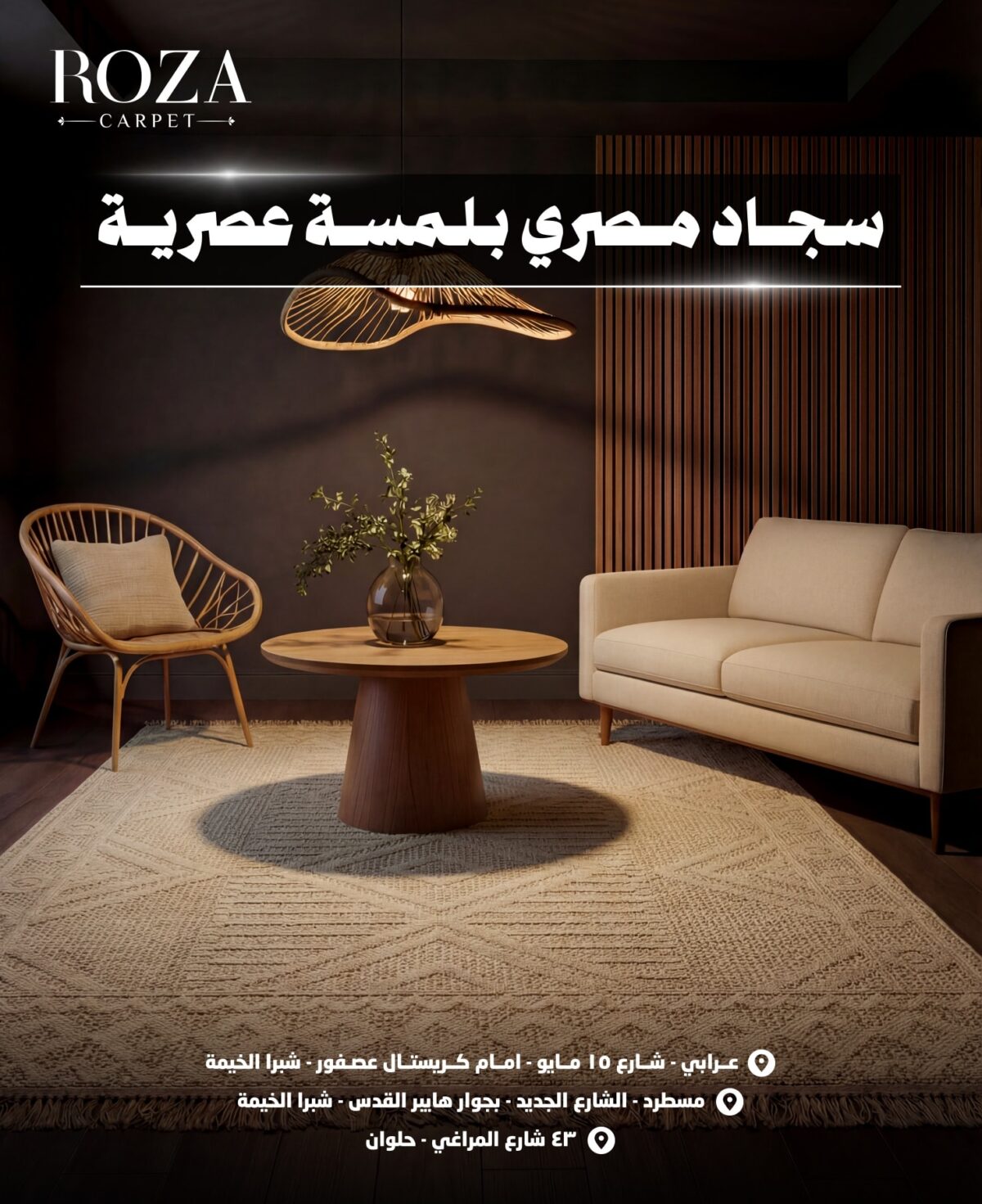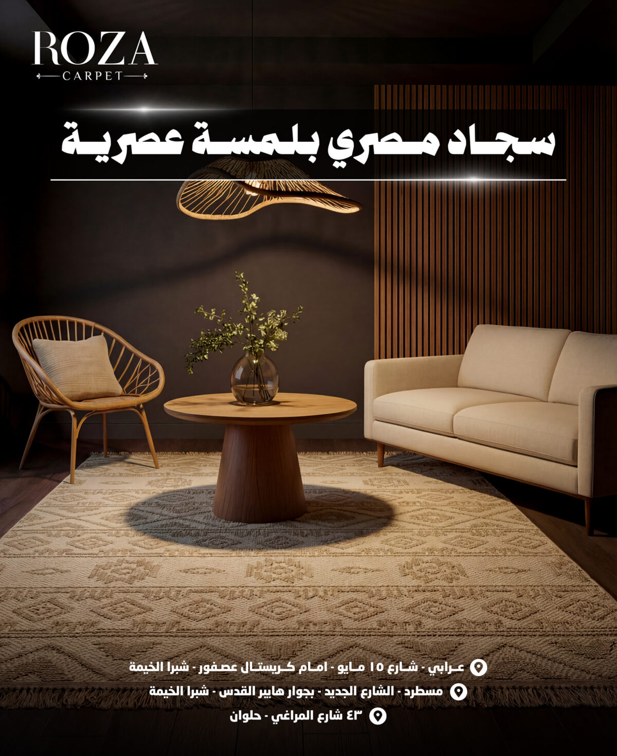 في النهاية Roza Carpet قدر يجمع بين الذوق، الجودة، والخدمة اللي بتسهل على العريس والعروسة تجهيز بيتهم بشكل أنيق ومريح. المكان بيوفّر قطع أرضيات تدي للشقة شكل دافي ومتكامل، وتخلي كل غرفة ليها شخصية خاصة من غير أي مجهود. وده السبب اللي بيخلي الناس ترشحه بثقة لأي حد بيدوّر على إضافة راقية وبسيطة في نفس الوقت لبيت جديد.