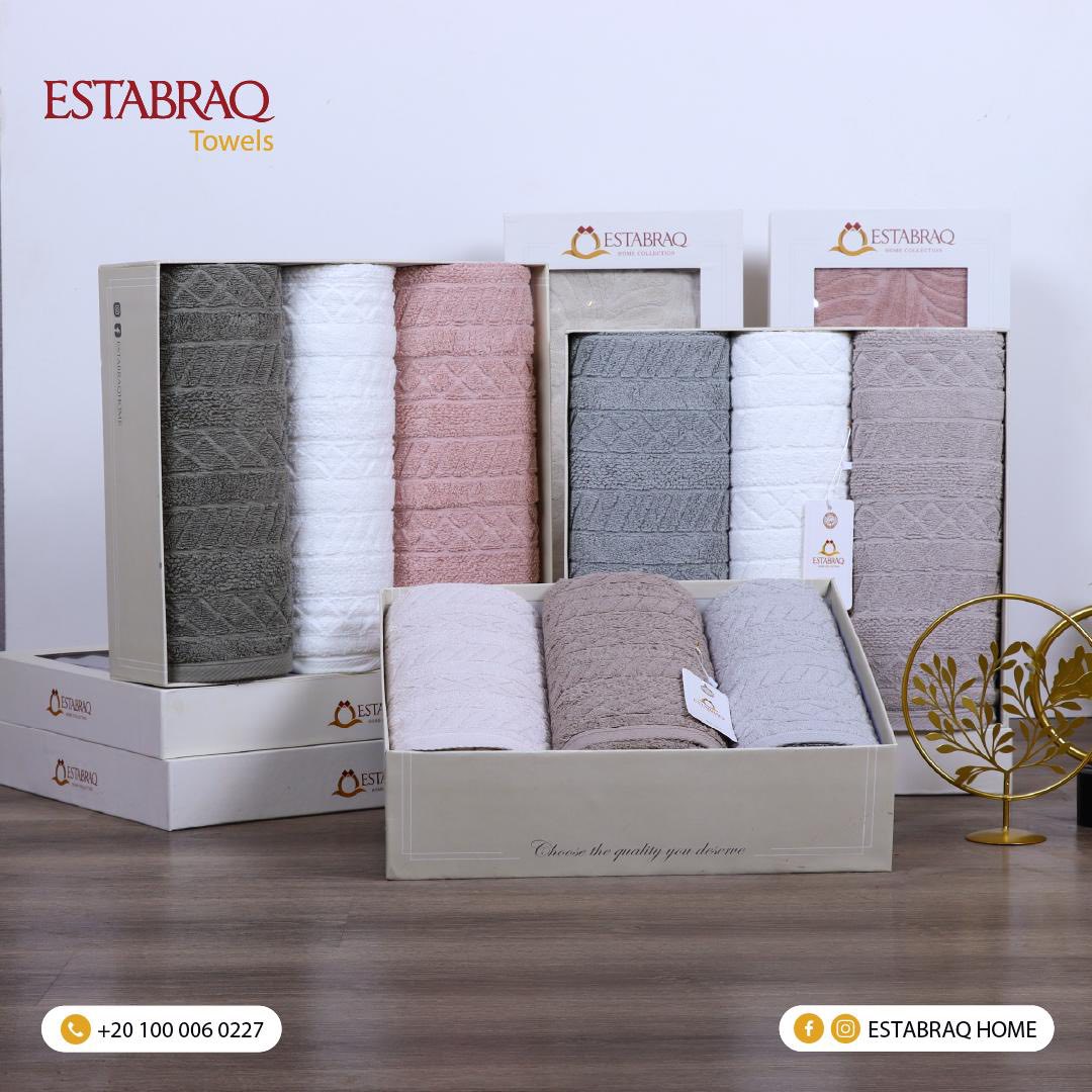كل منتج في ESTABRAQ بيتصنع بخامات مختارة بعناية وبيخضع لمعايير جودة دقيقة جدًا. الأقمشة قوية وناعمة، الألوان ثابتة، والخياطة متقنة. كل التفاصيل معمولة بإتقان علشان المفروشات تفضل محافظة على شكلها وأناقتها سنين طويلة.