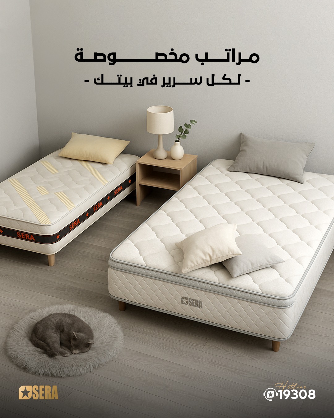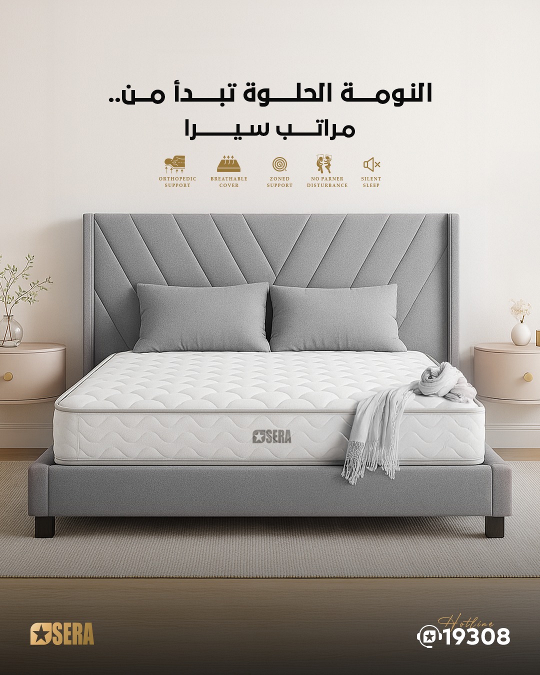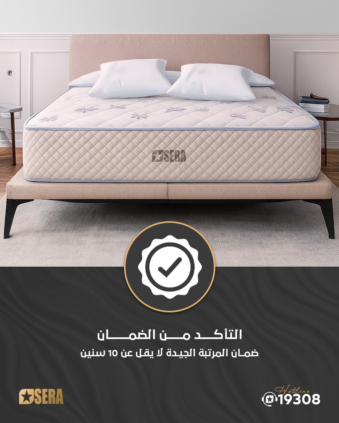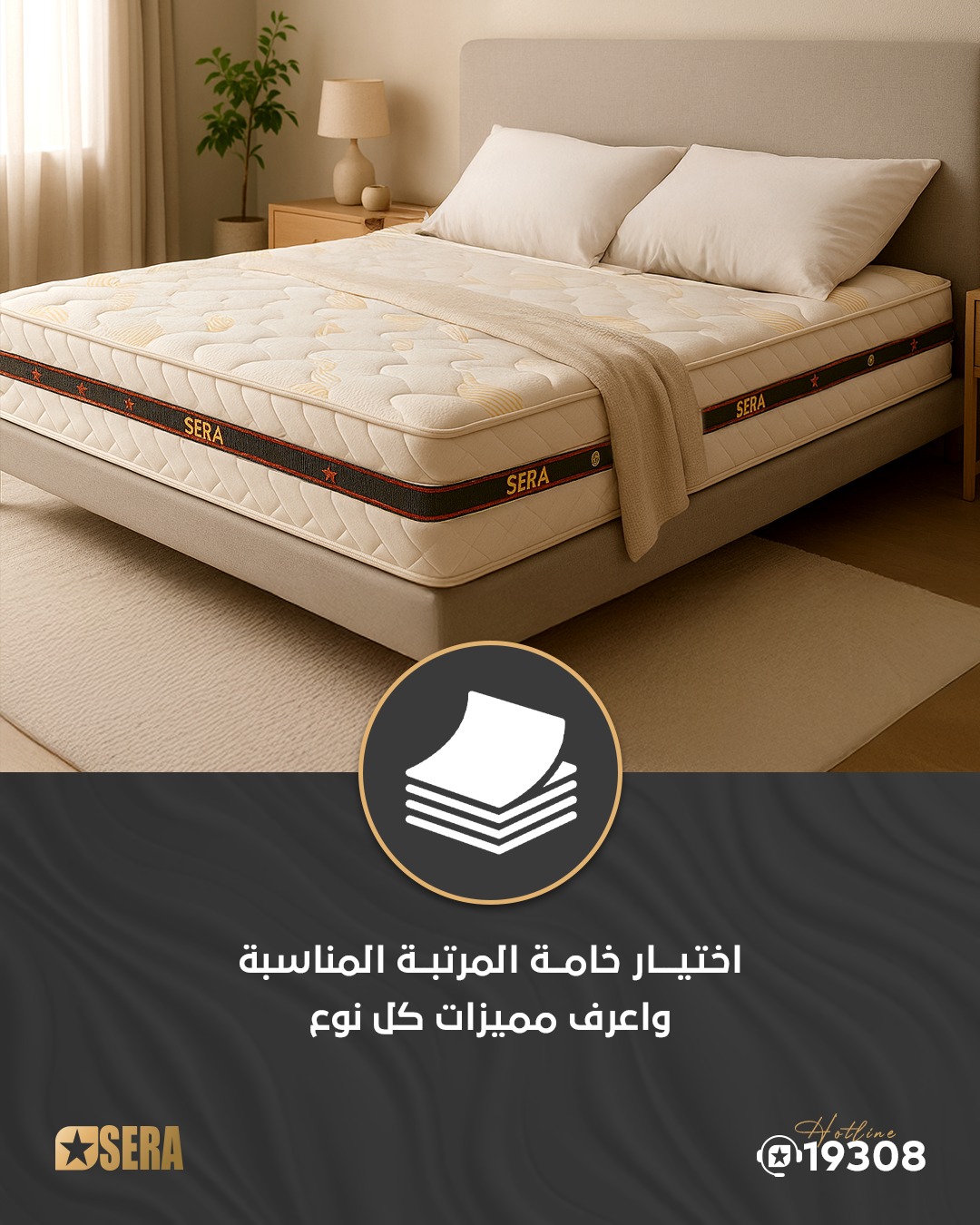 SERA قدرت تجمع بين الراحة وجودة الخامة وسهولة التعامل، وده اللي خلاها اختيار مناسب لناس كتير بتجهز بيت جديد وعايزة مرتبة تكون مريحة وتعيش معاهم. ومع تنوع الموديلات والأسعار، كل حد يقدر يلاقي المرتبة اللي تناسبه وتخلي نومه أريح وتبدأ حياته الزوجية براحة وهدوء.
