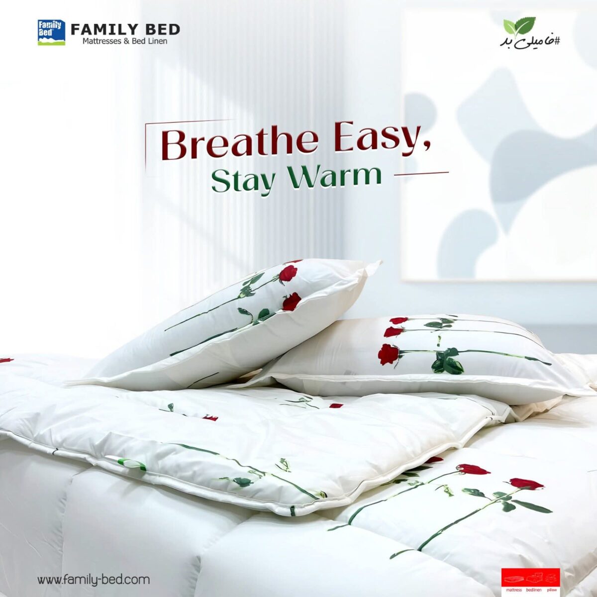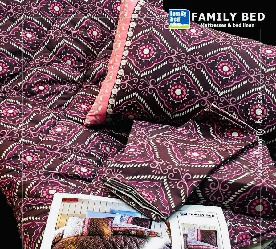 مش بس المراتب، Family Bed كمان بيقدّم تشكيلات مميزة من المفروشات اللي بتكمل شكل البيت بأناقة. أطقم سرير بخامات قطنية ناعمة وعدد خيوط عالي علشان تضمن نعومة ومتانة، وألحفة ودفايات بخامات خفيفة وحرارية تناسب كل الفصول.