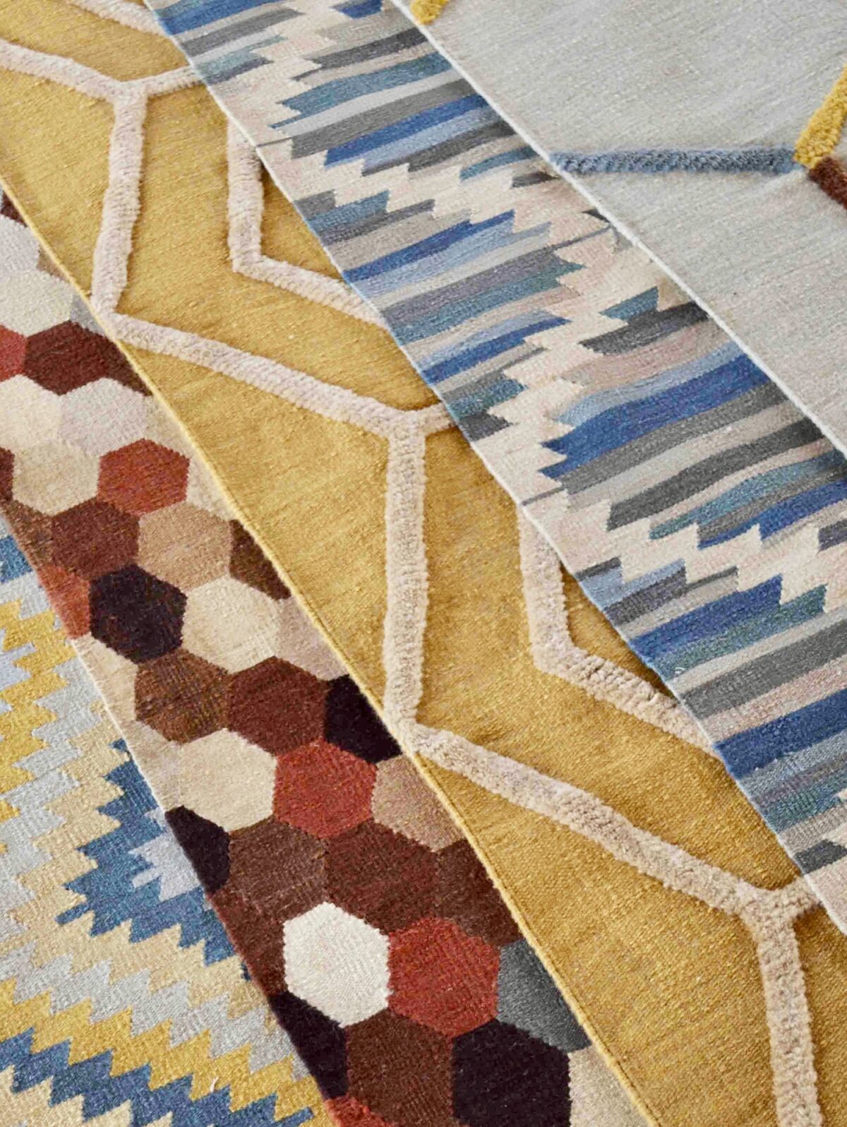 الخامات اللي بيستخدمها Kahhal Looms بتبان من أول لمس إنها معمولة بجودة عالية، لأنها بتعتمد على شغل يدوي دقيق بيخلي كل قطعة ليها طابع خاص ومتفرد. الألياف المستخدمة قوية وفي نفس الوقت مريحة، تدي إحساس دافي تحت الرجل، وتستحمل الاستخدام اليومي في الصالة أو الريسبشن من غير ما شكلها يتأثر بسرعة. وده مهم جدًا لأي حد بيجهز بيت جديد وعايز حاجة تعيش وتفضل ثابتة في شكلها.