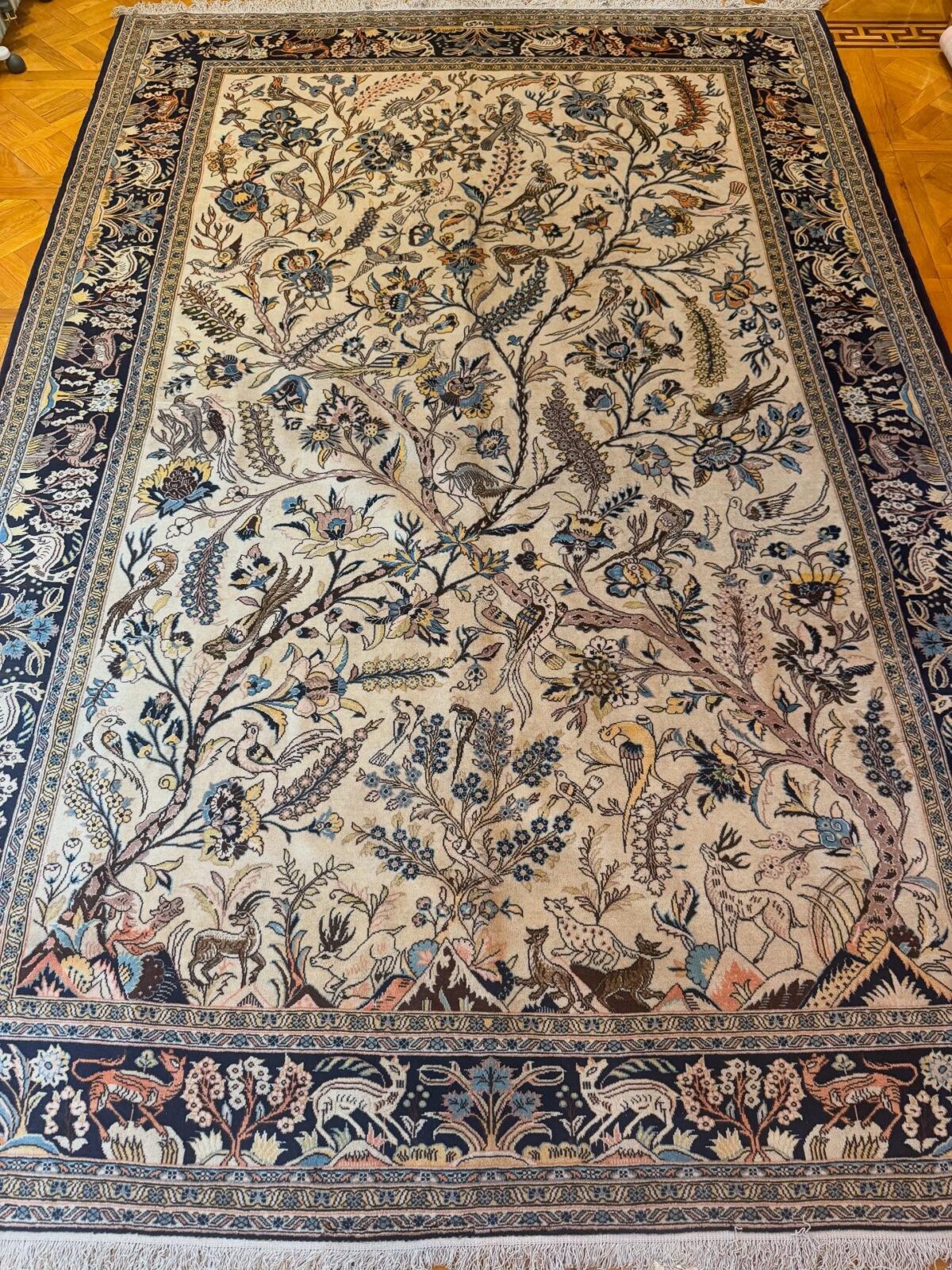 لو بتحب النقوش الكلاسيكية، هتلاقي تشكيلة مستوحاة من تبريز وأصفهان وكاشان ونائين: ورود متشابكة، مِداليون مركزي، وحدود مزخرفة بتدرّجات نبيتي، كحلي، وعاجي. ولأصحاب الذوق العصري، فيه خطوط تجريدية وأشكال هندسية مبسّطة بنفس الروح الشرقية لكن بألوان حيادية تناسب الديكور المودرن.