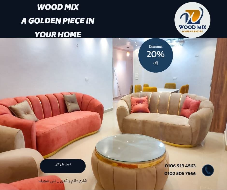 Wood Mix Furniture من المعارض اللي بقت مميزة جداً في سوق الأثاث، وظهر اسمها بين الناس اللي بتجهز شقتها لأنهم بيجمعوا بين الذوق العصري، الخامات الكويسة، والأسعار اللي تناسب العرسان اللي بيبدأوا حياتهم خطوة بخطوة. أول ما تدخل معرض Wood Mix Furniture هتحس إن المكان معمول بذوق، وكل قطعة متعروضة بشكل يخليك تشوفها كأنها موجودة فعلاً في بيتك، وده بيساعد أي عريس وعروسة يتخيلوا شكل الشقة بعد الفرش بطريقة واضحة ومريحة.