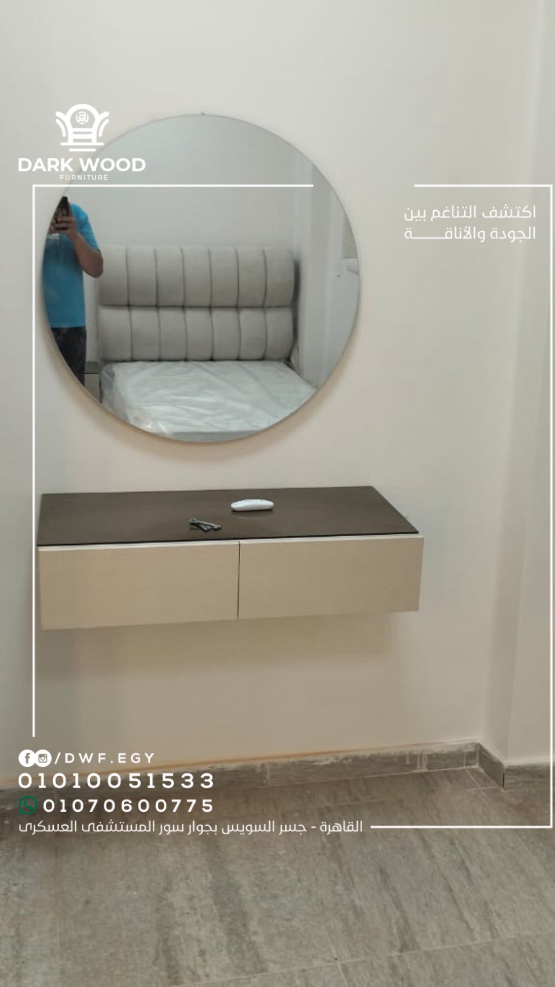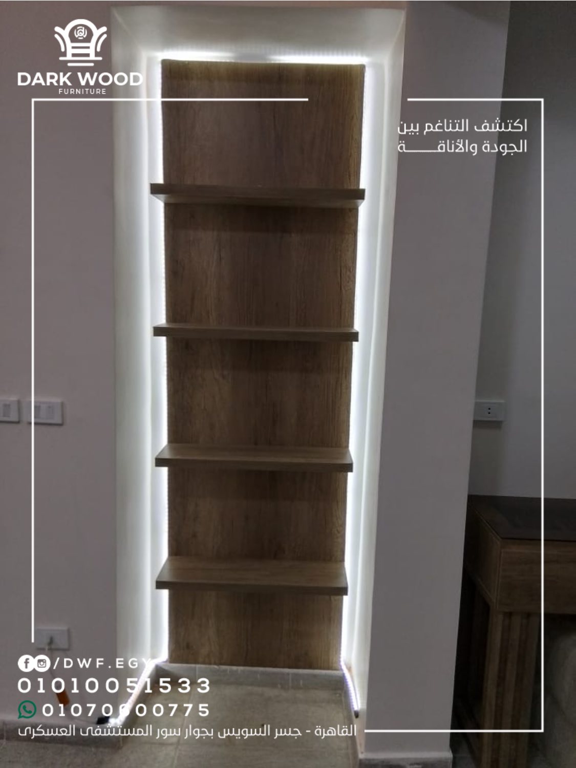 Dark Wood Furniture كمان بيوفّر خدمة قياس المساحات قبل أي طلب. المندوب بينزل الشقة يقيس كل حاجة: عرض الأبواب، مساحة الأوضة، أماكن الشبابيك، وتفاصيل الكهرباء. وده بيضمن إن كل قطعة هتدخل بسهولة وهتتركب من غير ما يحصل مشاكل وقت الاستلام. النقطة دي مهمة جداً خصوصاً في الأثاث الخشبي الغامق اللي غالباً بيكون تقيل ومصمم بمقاسات دقيقة.