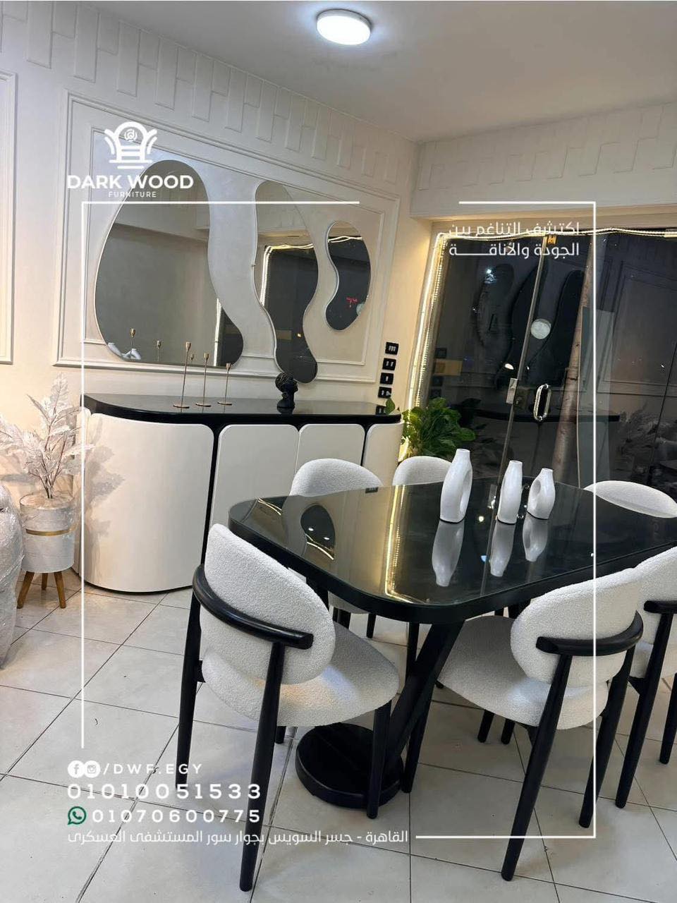 اللي بيميز Dark Wood Furniture فعلاً إن التصميمات عندهم مش بس فخمة، لكن كمان عملية. هتلاقي أوض نوم خشبها تقيل وثابت، وتفاصيلها بسيطة لكن باينة، وده بيدي إحساس بالدفء والتميز. الركنات هناك بتكون متنسقة مع اللون الغامق للخشب سواء بأقمشة فاتحة تعمل توازن، أو بألوان داكنة تكمل شكل الشياكة. أما السفرة فبتكون من النوع اللي يبان قيمته من أول نظرة، ترابيزة قوية بخشب غامق لامع أو مطفي حسب الذوق، وكراسي مريحة بتشطيب نضيف.