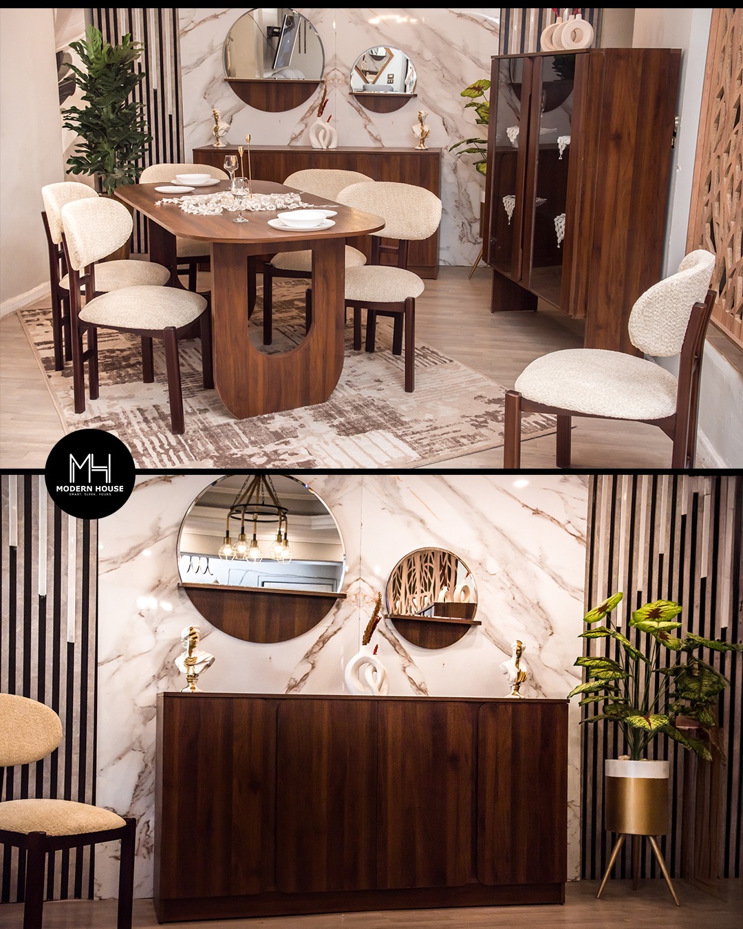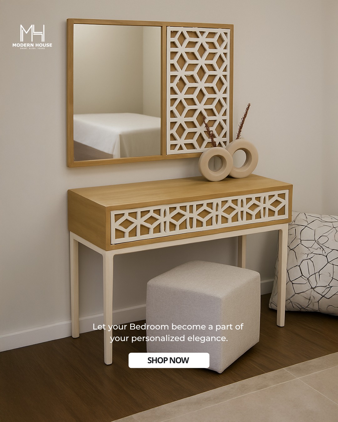 Modern House مش بس أثاث أساسي، لكن كمان عندهم كونسولات، طاولات قهوة، وحدات تلفزيون، ومرايات بشكل عصري. القطع دي بتكمّل شكل البيت وتخليه يظهر بنظام واضح ومتناسق. التصميمات هناك معمولة علشان تناسب بعض، وده يسهّل عليك تنسّق كل حاجة من مكان واحد.