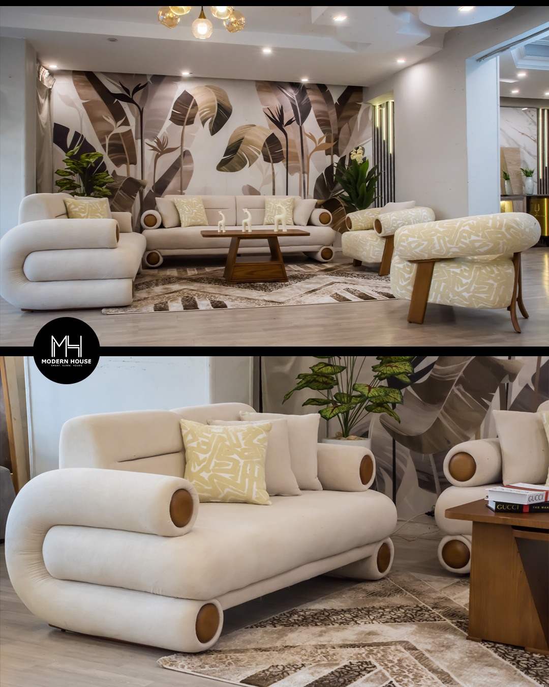 الستايل السائد في Modern House هو البساطة اللي فيها لمسة أناقة، يعني تقدر تفرّش بيتك من غير ما تحس بزحمة أو بهرجة، وفي نفس الوقت يطلع شكله حلو وراقي. الألوان هادية وغالبًا بتدور حوالين الرمادي، الأبيض، البيج، والنيود، وفيه بعض القطع بألوان جريئة زي الأزرق أو الزيتي، لكن دايمًا بتكون متناسقة.