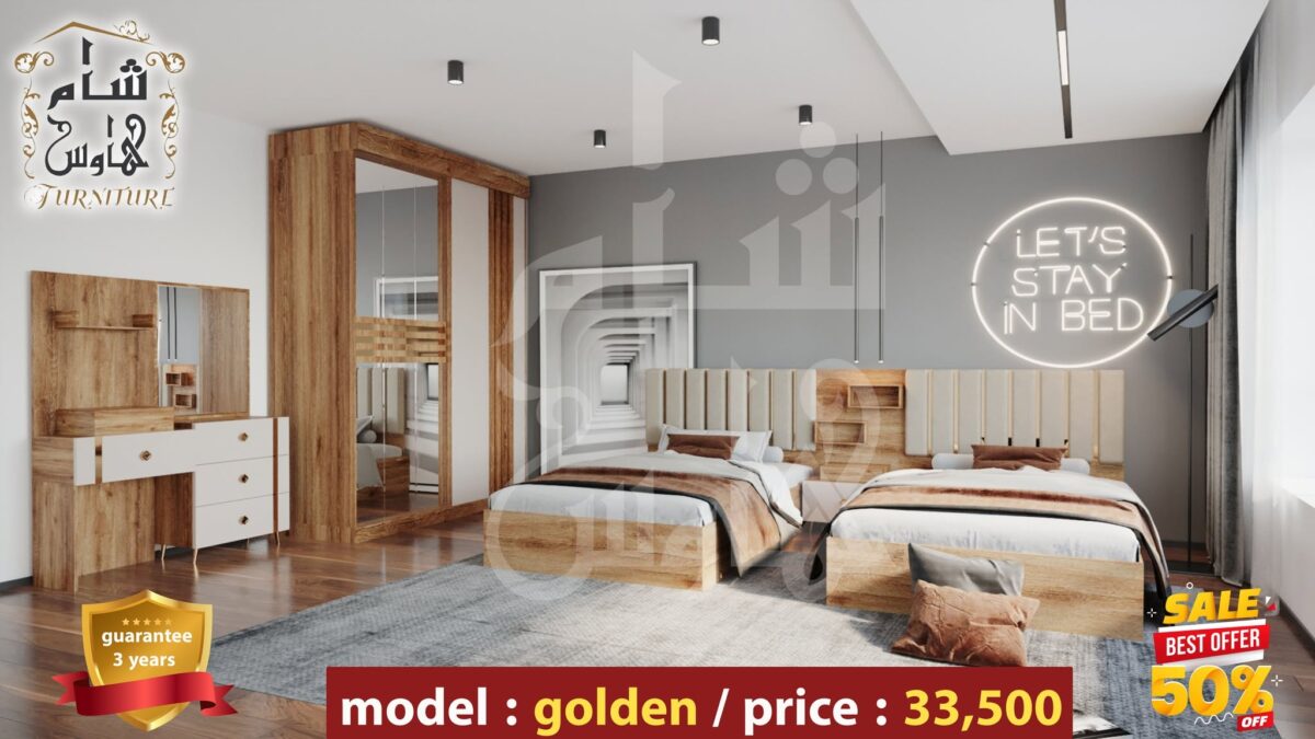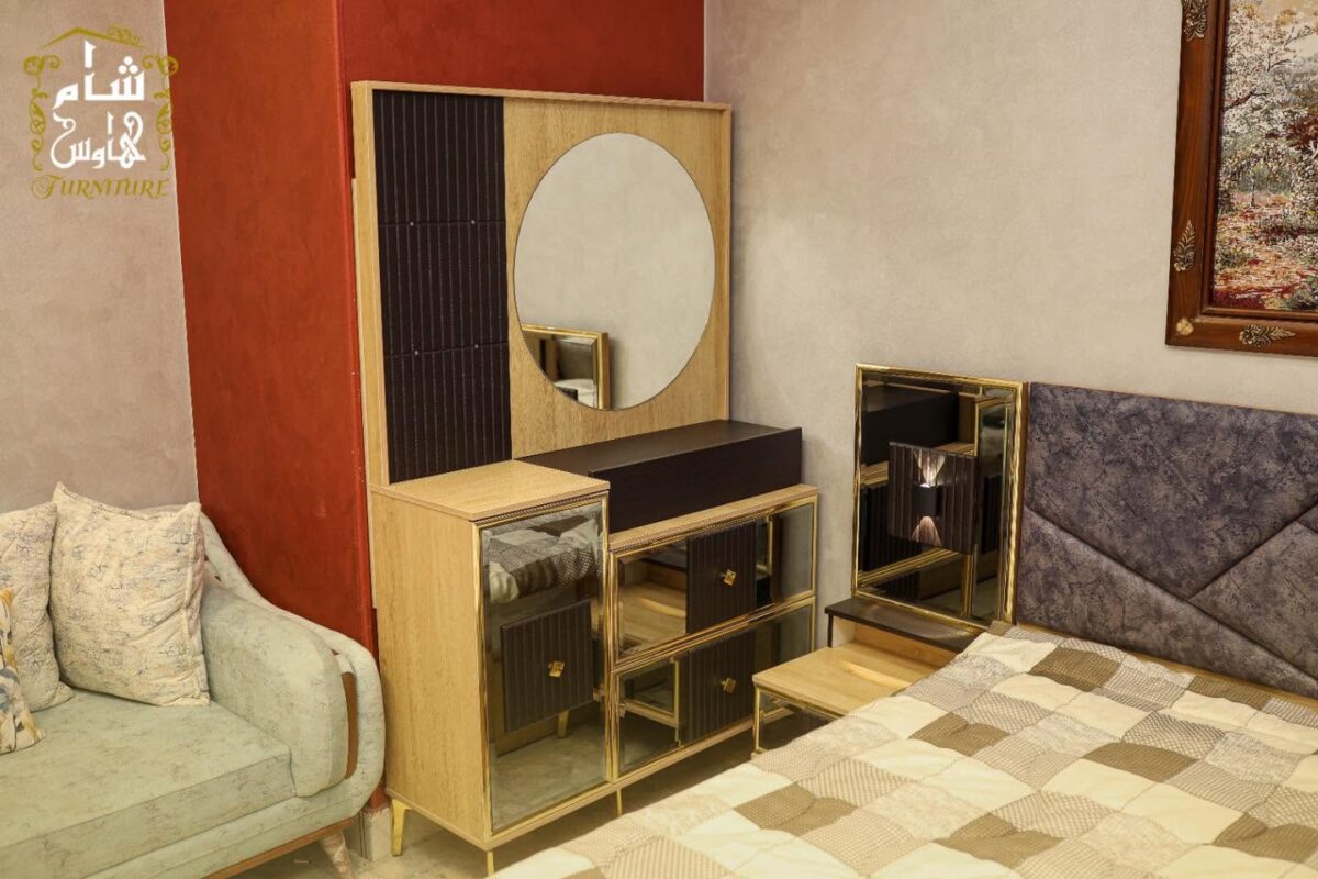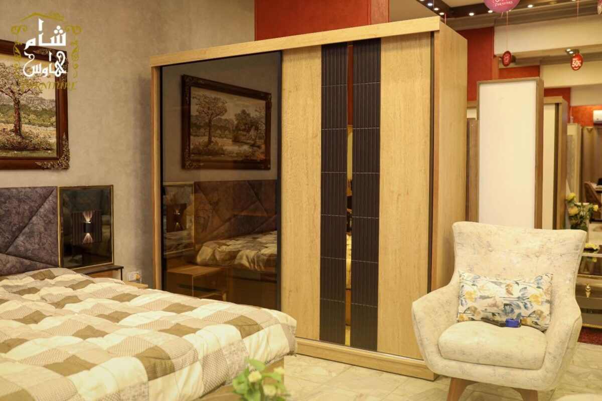 اللي بيميز Sham House إن تصميماتهم غالباً بتميل للستايل المودرن الهادئ اللي بيجمع بين البساطة والعملية، وده بيبان في أوض النوم. السراير خطوطها ناعمة ومريحة للعين، والخشب متين وتشطيب ممتاز، والدولاب سواء جرار أو بمفصلات متقسم بشكل عملي يسهّل التخزين ويستغل كل مساحة. الألوان المستخدمة كلها درجات هادية زي الرمادي، البيج، الجريج، والأخشاب الطبيعية، وده بيدي للأوضة شكل رايق ومناسب للشقق الجديدة.