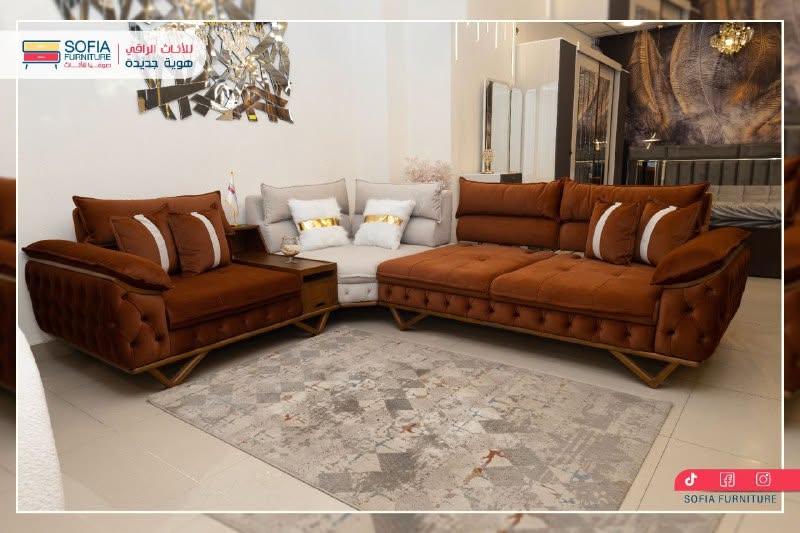 أما الركنات فهي من القطع اللي SOFIA Furniture فعلاً شاطر فيها. الركنة إسفنجها مريح وثابت، القماش خامته عالية وجودته واضحة، والخياطة كلها متقنة. الموديلات متنوعة بين ركنات صغيرة مناسب للمساحات الضيقة، وركنات أكبر فيها شيزلونج أو بوف للريسبشن الواسع. الألوان دايماً رايقة ومتناغمة مع أي ديكور، وبتدي للبيت شكل مرتب ومريح.