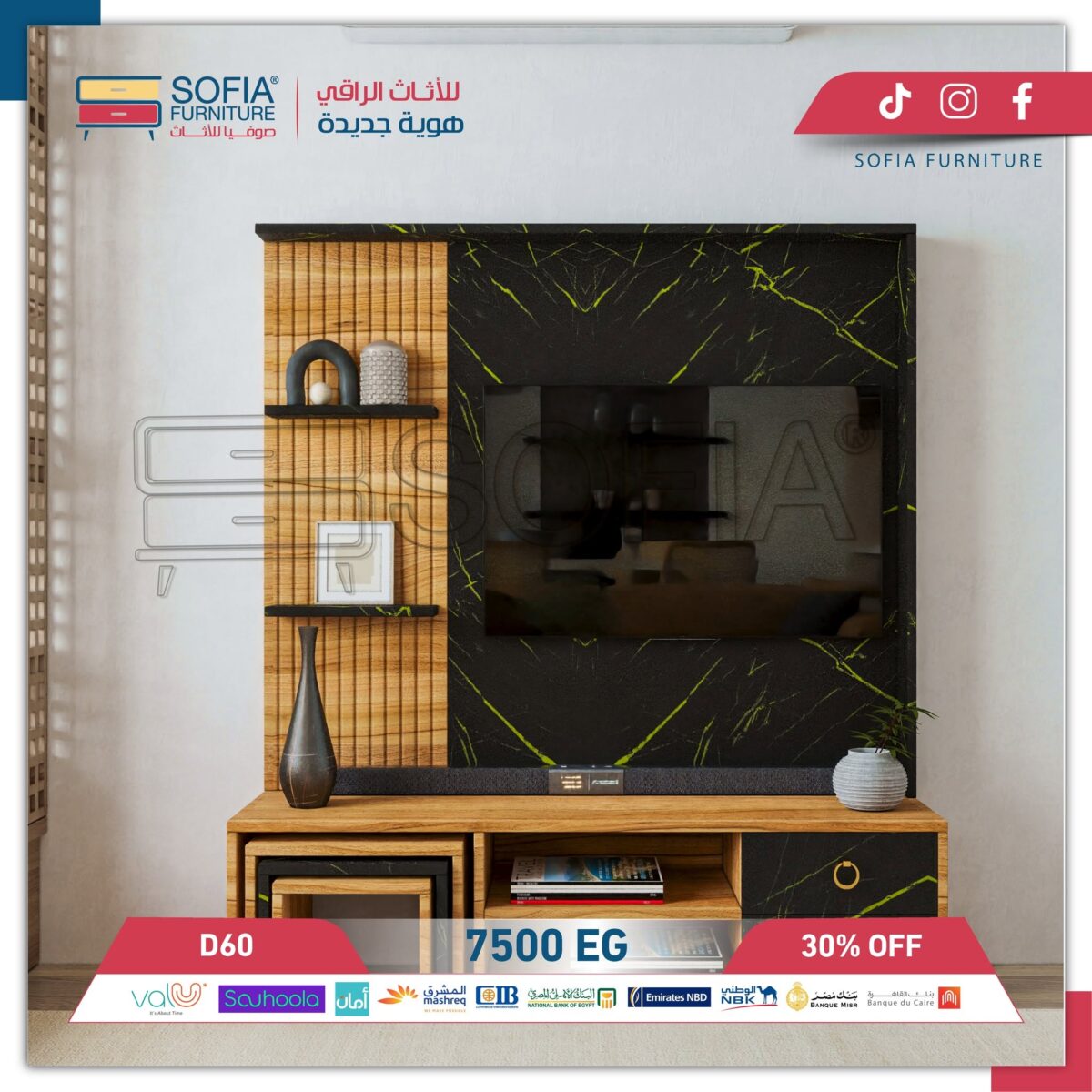 وحدات التخزين اللي بيقدّمها SOFIA Furniture كمان عليها شغل محترم. سواء كان وحدة تلفزيون، مكتبة، أو كونصول، التصميمات كلها خفيفة على العين ومناسبة للمساحات الصغيرة والكبيرة. الوحدات متينة وتقسيمها عملي، وده بيساعد في تنظيم البيت وظهوره بشكل متكامل.