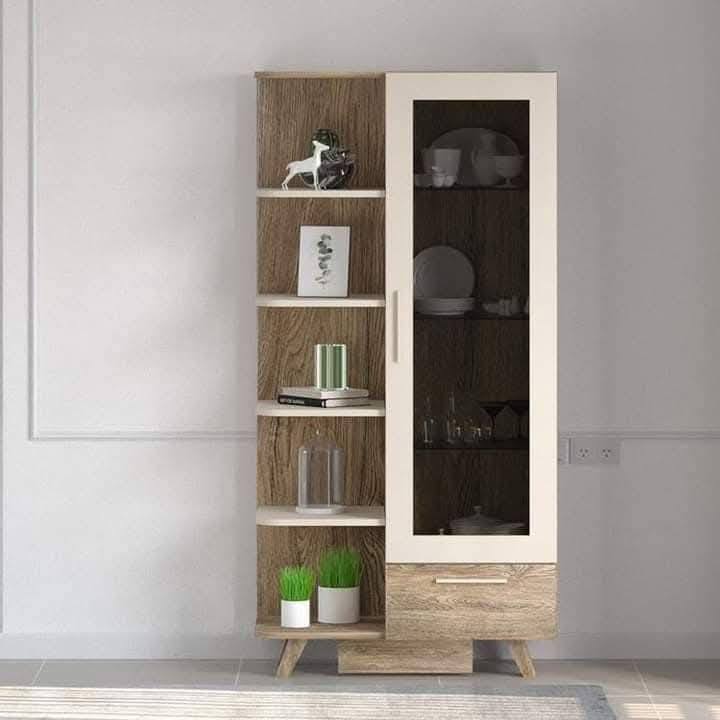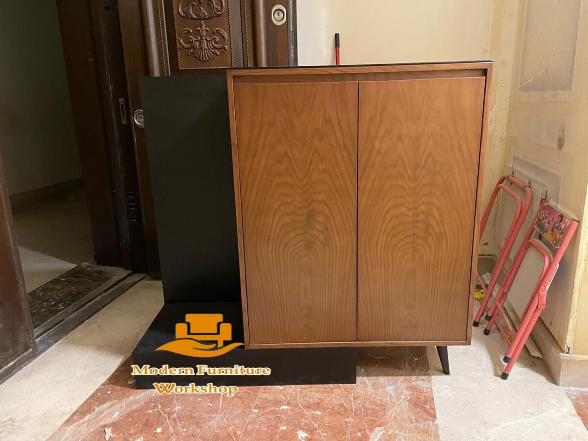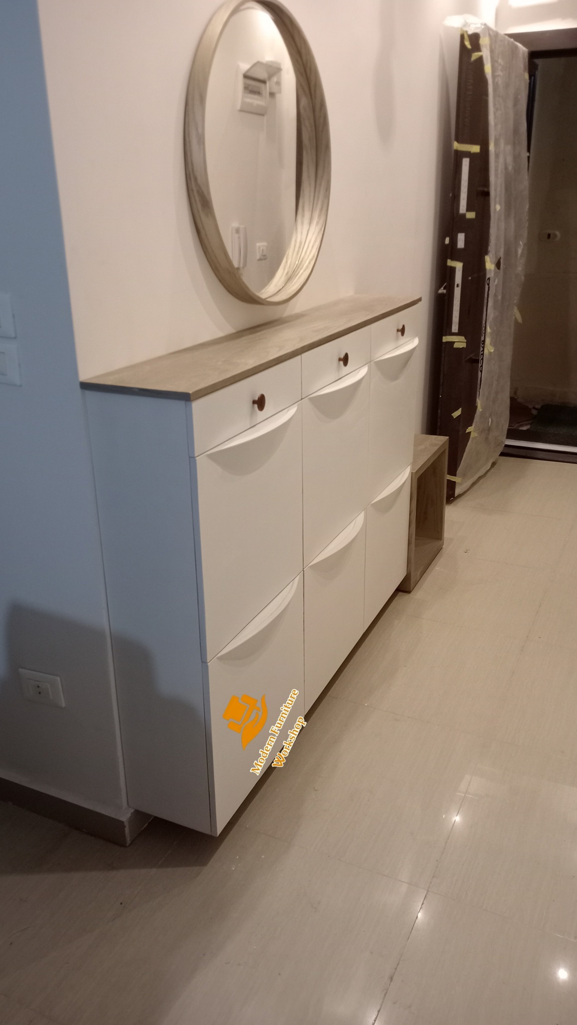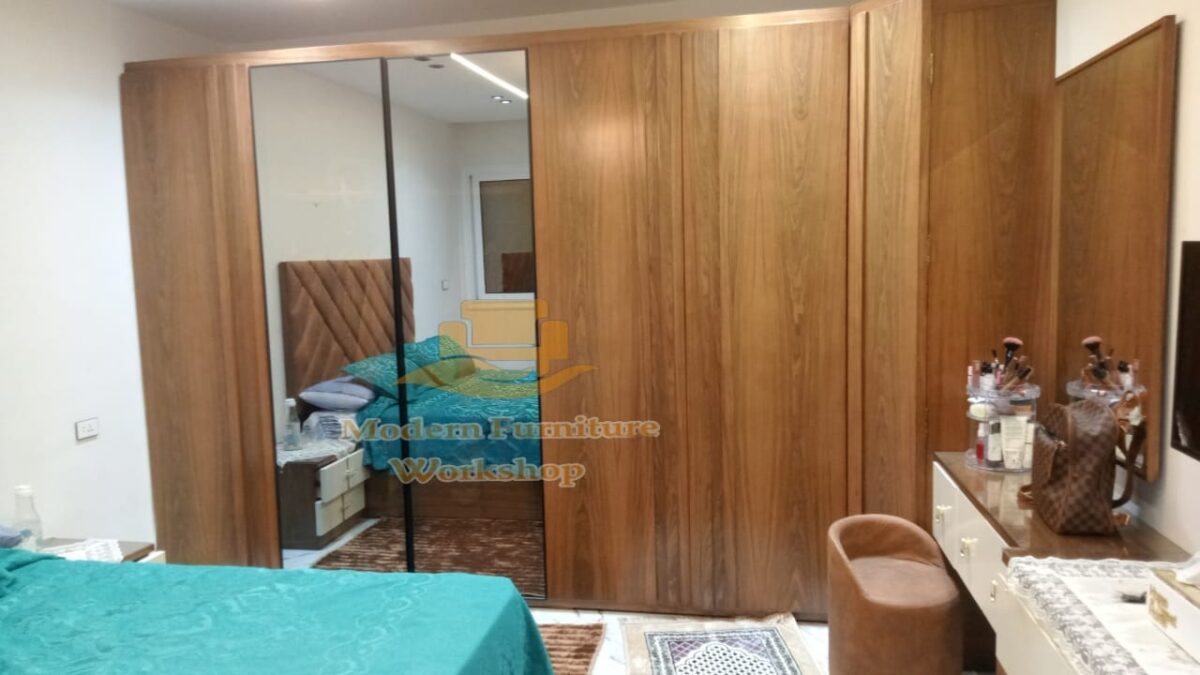 كل الأثاث هناك بيتعمل بخامات متينة زي الكونتر والخشب الصناعي عالي الجودة، والتشطيب بيبقى من PVC أو دهان دوكو مطفي أو لامع، حسب الموديل. وده بيخلي القطعة تعيش وتفضل محتفظة بشكلها سنين.