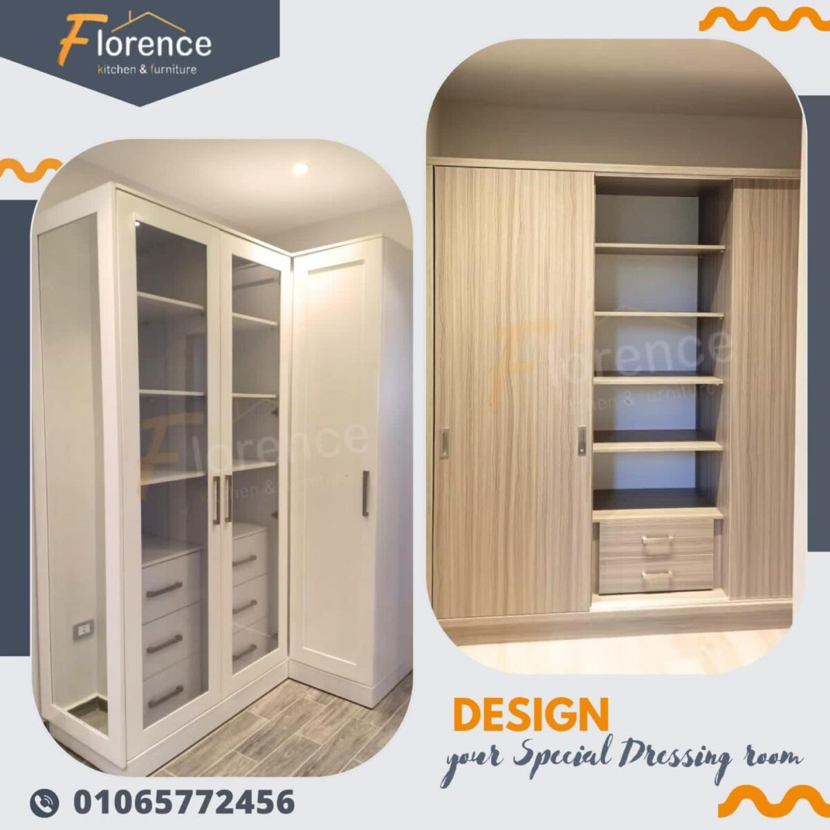 اللي بيميز Florence إن التصميمات عندهم فيها لمسة من الفخامة الهادية. هتلاقي أوض نوم مودرن بخشب متين وتشطيب نضيف قوي، السرير خطوطه بسيطة لكن شكله شيك، والدولاب سواء جرار أو مفصلات معمول بطريقة عملية تستغل كل مساحة من غير ما يكون شكله تقيل على الأوضة. الموديلات بتجمع بين الراحة والشكل الراقي، وده اللي بيدور عليه معظم العرسان في تجهيز بيتهم.