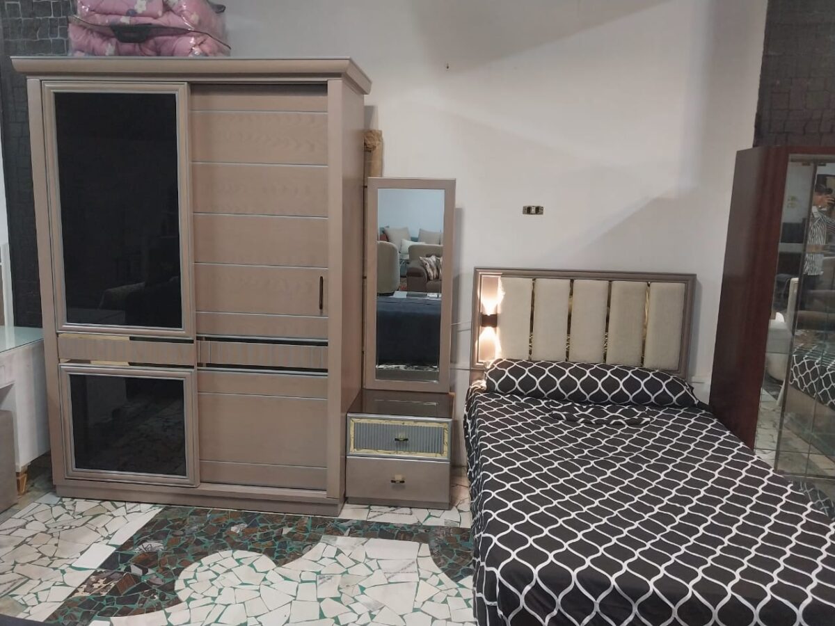 في قسم غرف النوم، هتلاقي سراير مودرن وكلاسيك، ودولايب بتقسيمات متنوعة، وتسريحات بتكمل الشكل العام للغرفة. كمان التصميمات مناسبة للمساحات الكبيرة والصغيرة، يعني هتلاقي اللي يناسب شقتك مهما كانت مساحتها.
