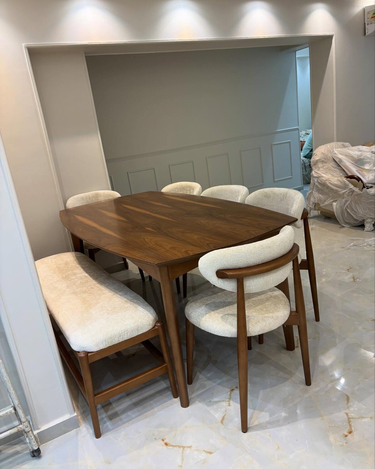 السفرة عند Kint.furniture كمان بتبان فيها جودة الشغل. الترابيزة خشبها قوي ومستقر، والتشطيب نضيف جداً، والكراسي مريحة وتنجيدها راقي. الموديلات مودرن بخطوط خفيفة، تليق بالشقق الجديدة اللي بتركّز على البساطة والأناقة في نفس الوقت. سواء شقتك صغيرة أو واسعة هتلاقي موديل مناسب يخلي المكان رايق ومتناسق.