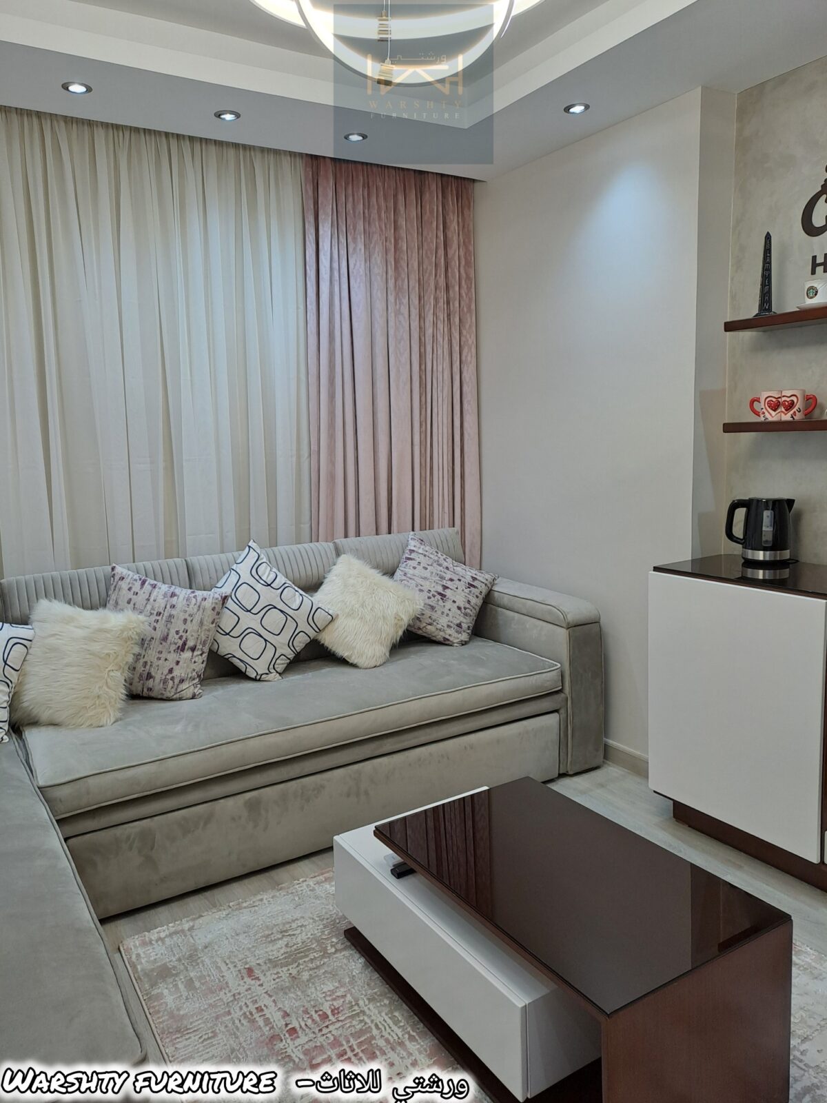 أما الركنات، فهي من أقوى القطع اللي Warshty Furniture بتميز فيها. الركنة عندهم قماشها نضيف، إسفنجها مريح وثابت، والتفاصيل كلها معمولة بإتقان من أول الخياطة لحد شكل الرجلين. الألوان هناك هادية وشيك وتمشي مع أي ديكور، سواء الرمادي، البيج، أو درجات البني الفاتح. في موديلات صغيرة للمساحات الضيقة، وموديلات أكبر فيها شيزلونج أو بوف. الميزة إن كل ركنة شكلها عملي ومنظم وفي نفس الوقت جمالها باين من بعيد.