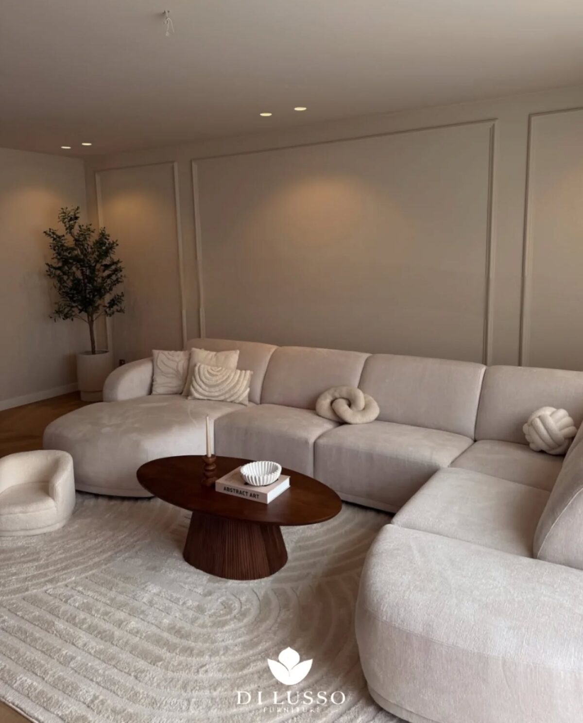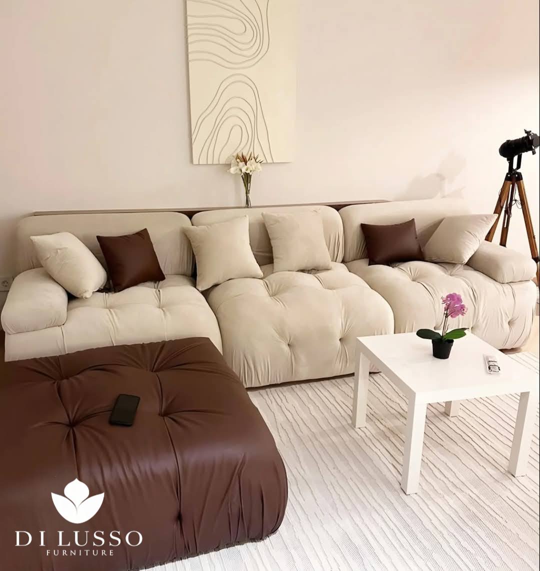 أما الركنات، فهي من القطع اللي DI LUSSO متميز فيها جداً. الركنة عندهم إسفنجها مريح ومتين، القماش خامته نضيفة وشكلها راقي، والألوان متنوعة بين الرمادي، البيج، والألوان الهادية اللي بقت الأساس في أغلب الشقق المودرن. في موديلات فيها بوف أو شيزلونج، وفي موديلات صغيرة تناسب الريسبشن الضيق من غير ما تزحم المكان. الخطوط الهادية في التصميم بتدي شكل جميل ومريح لأي غرفة معيشة.