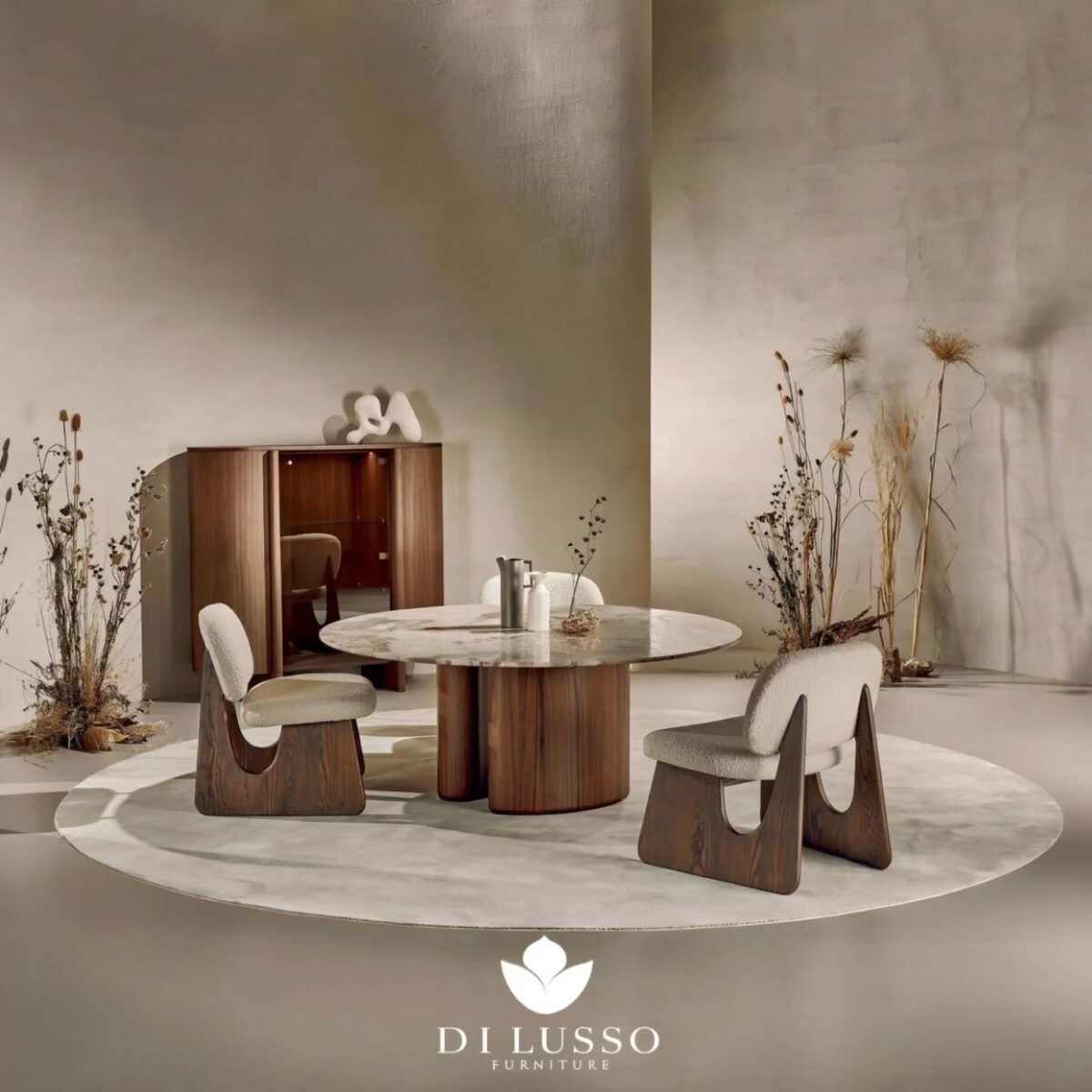 السفرة في DI LUSSO هي كمان من القطع اللي تبان من أول نظرة إن شغلها متقن. الترابيزة خشبها متين وتفاصيلها واضحة ومتناسقة، والكراسي مريحة وتنجيدها شيك. التصميمات مودرن لكنها مش معقدة، وده بيخلي السفرة جزء متكامل مع شكل البيت بدل ما تبقى قطعة منفصلة. عندهم موديلات تناسب المساحات الصغيرة وموديلات أكبر للشقق الواسعة.