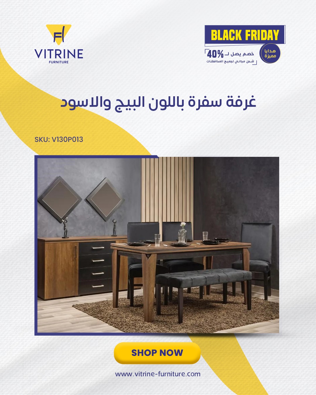 السفرة عند Vitrine Furniture كمان عليها شغل واضح. الترابيزة خشبها قوي وثابت، التشطيب رايق ومستوي، والكراسي مريحة وتنجيدها متقن. التصميمات مودرن بخطوط بسيطة، وده بيخلي السفرة مناسبة لأي ديكور سواء هادي أو فيه لمسات كلاسيكية بسيطة. سواء بدور على سفرة صغيرة للمساحة المحدودة أو سفرة كبيرة للمعيشة، هتلاقي عندهم موديلات مناسبة.