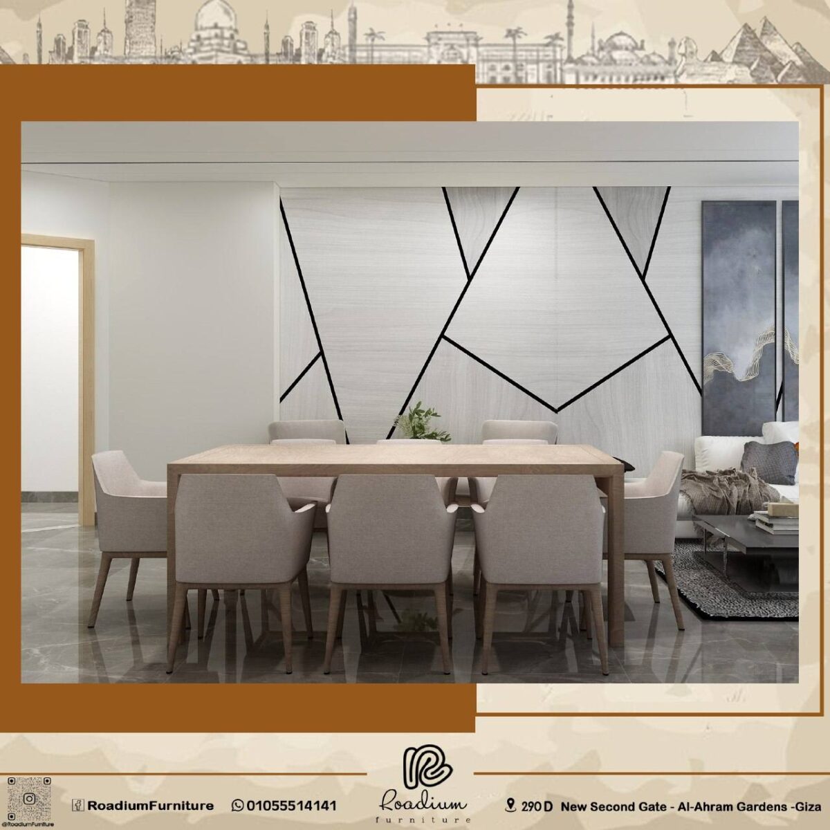 في قسم السفرة، هتلاقي طاولات بأشكال عصرية، بعضها مستطيل وبعضها دائري، وكراسي بتصميمات حديثة ومريحة، وده بيخلي العزومات والجمعة حوالين السفرة تجربة ممتعة مش بس في الأكل، لكن كمان في الشكل.