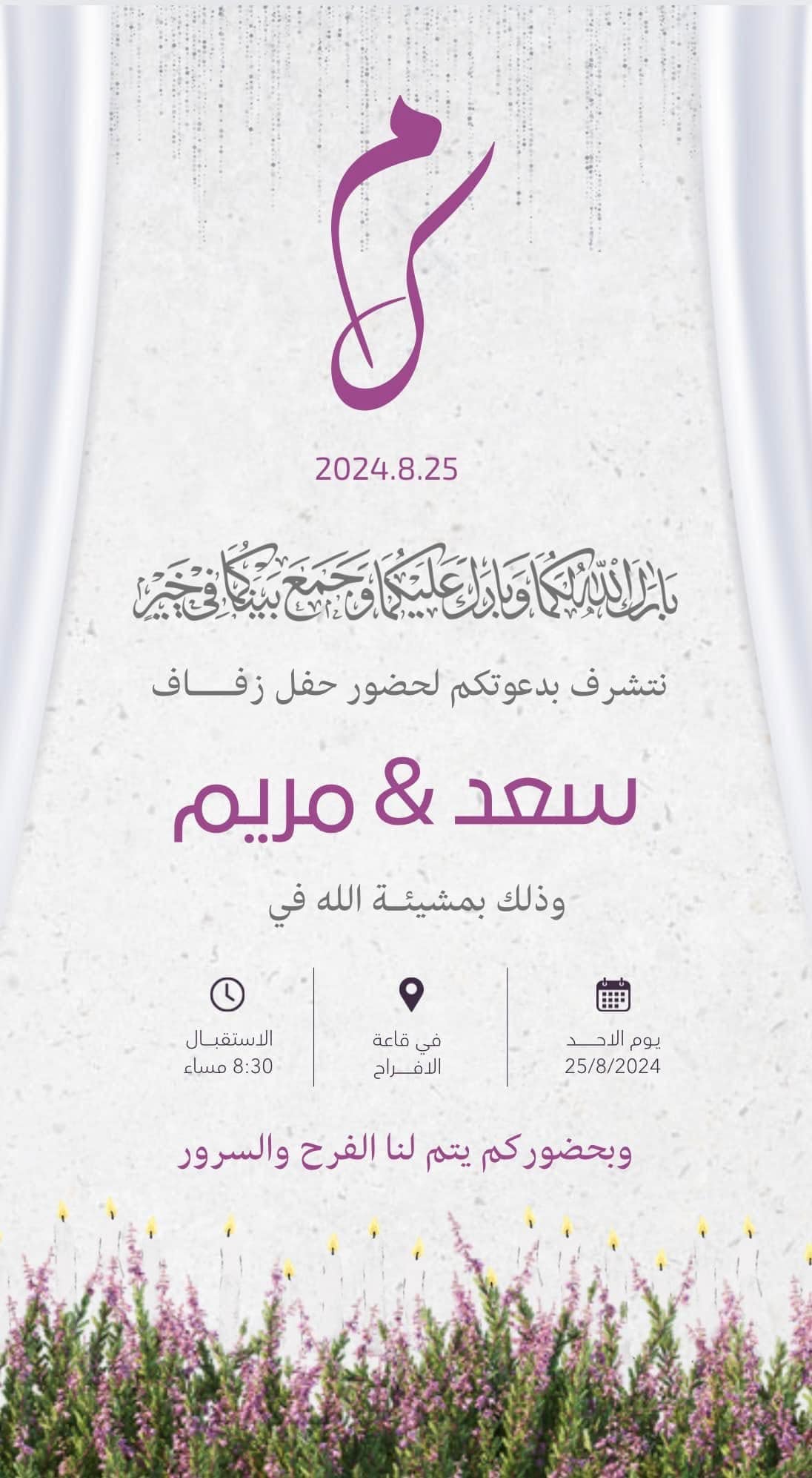 اختيار دعوة الفرح مش مجرد خطوة في تجهيزات الزفاف، لكنه تفصيلة مهمة بتكمل الصورة العامة للحفل. مع "سموز لاين"، هتضمن إن الدعوة بتعبر عنك بأفضل شكل، سواء كنت بتدور على لمسة فخامة، تصميم بسيط، أو حتى فكرة جديدة كليًا.