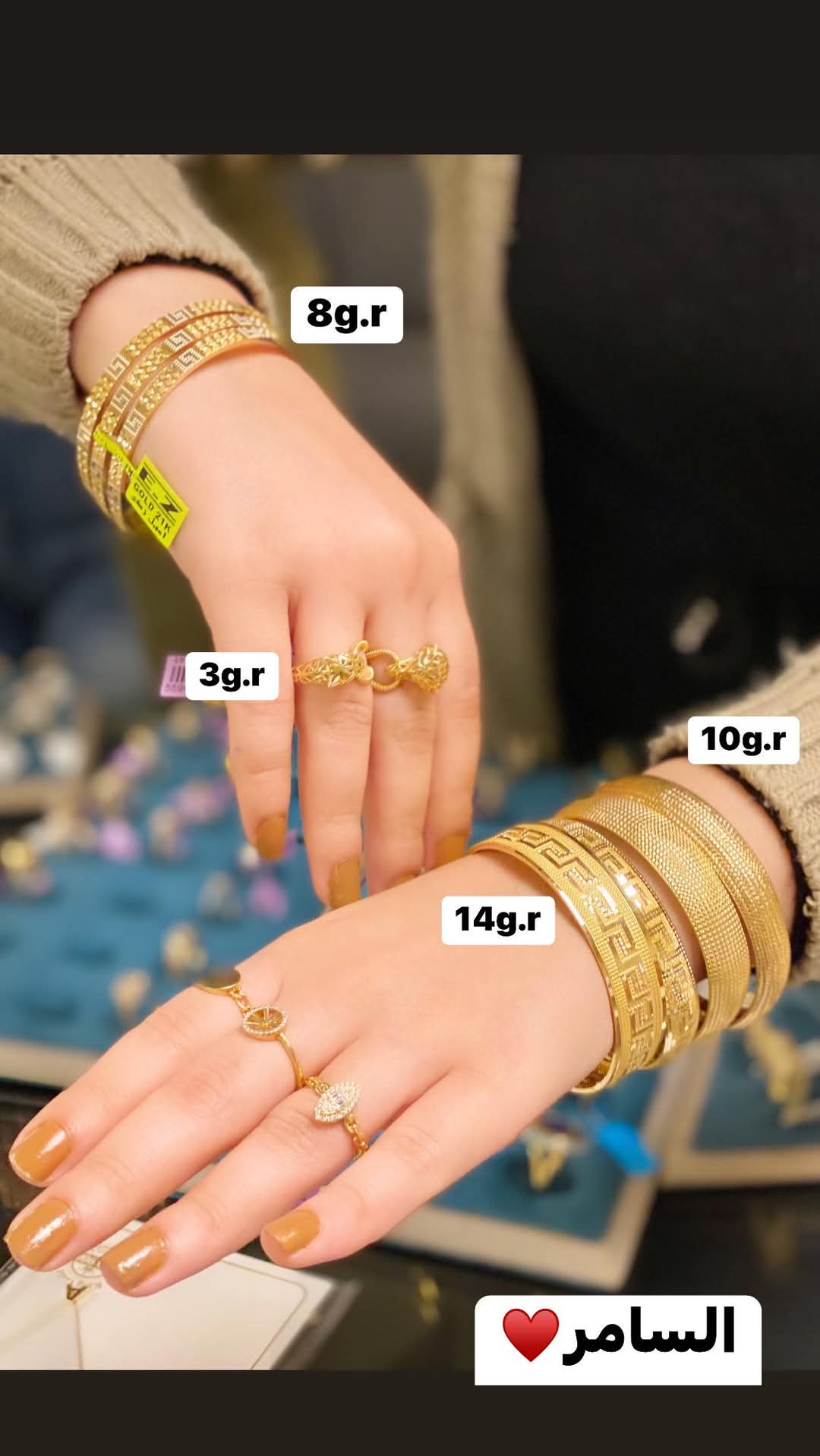 في مجوهرات السامر، هتلاقي تشكيلة رائعة من الخواتم، السلاسل، الأساور، والأنسيالات المصنوعة بحرفية ودقة عالية. كل قطعة مصنوعة من خامات نقية تضمن لك منتج يدوم مع الزمن ويحافظ على رونقه وجماله. المحل بيهتم بتوفير تصميمات حديثة وكلاسيكية تناسب جميع الأذواق، بحيث تلاقي القطعة اللي تعبر عن شخصيتك الفريدة.