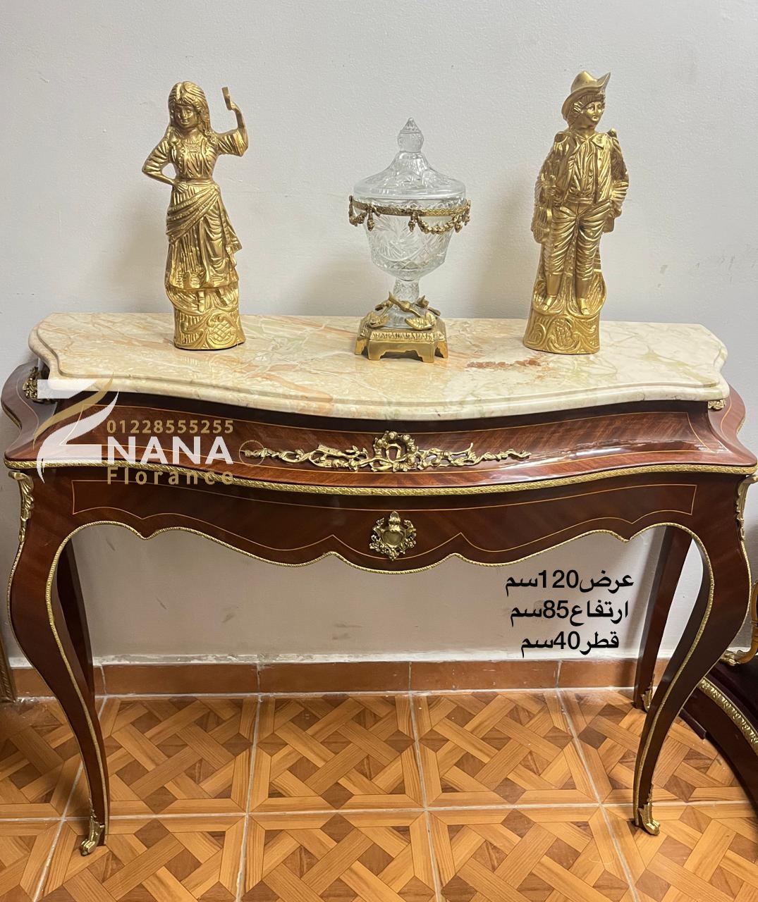 لو بتدور على قطع ديكور كلاسيك هتلاقي كونسولات عربية وشبكات مدمجة في الخشب مع مرايا اطاراتها خشب زان منقوش يدويا وكنبات صغيرة مصنوعة من جلد صناعي ملون بالكريز والاخضر الداكن تضيف رونق للمدخل ده غير اطقم مزهريات من البورسيلين الصيني الاصيل والقلالين المكتنزة بالزهور الملونة واطباق تقديم مزخرفة بخطوط ذهبية