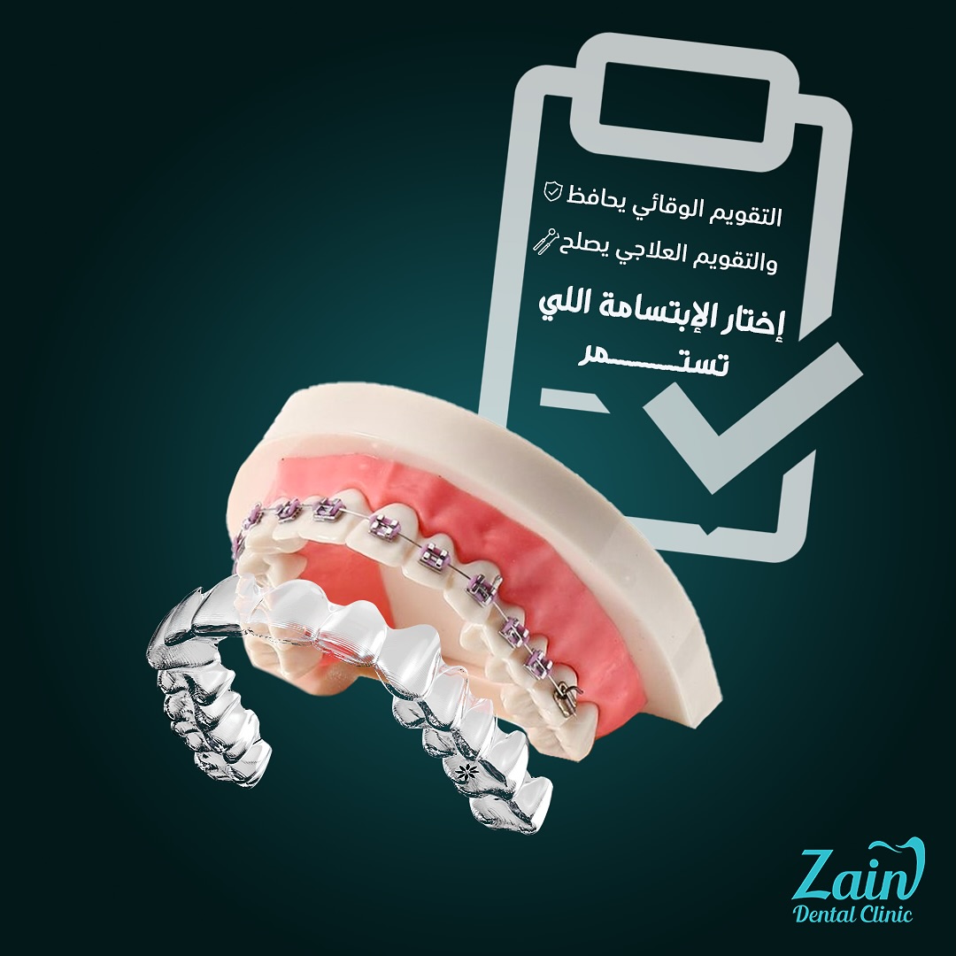 وده مش كل حاجة، لأن Zain Dental Clinic كمان بيقدم خدمات تقويم الأسنان بشتى أنواعه. التقويم الشفاف بقى خيار شعبي جدًا والعيادة بتلبسه بعلب بلاستيك شفافة بتتغير كل أسبوعين، ومعاها متابعة دورية بسيطة. لو محتاج حاجة أكتر قوة، التقويم المعدني الحديث بيمتاز بأقواس رفيعة ومريحة أكتر من القديم.