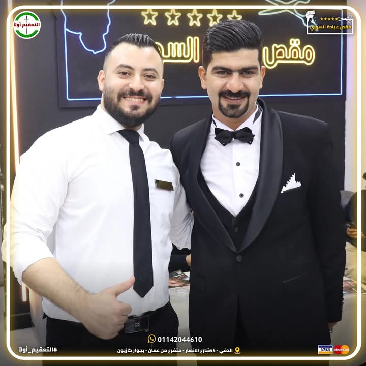 لأن العريس لازم يكون في أفضل حالاته يوم فرحه، مقص عبادة السوري بيقدم باقات مخصصة للعريس تشمل قص الشعر، صبغ الشعر والدقن، العناية بالبشرة، والاستشوار، وكل التفاصيل اللي بتضمن ليك إطلالة مثالية في أهم يوم في حياتك.