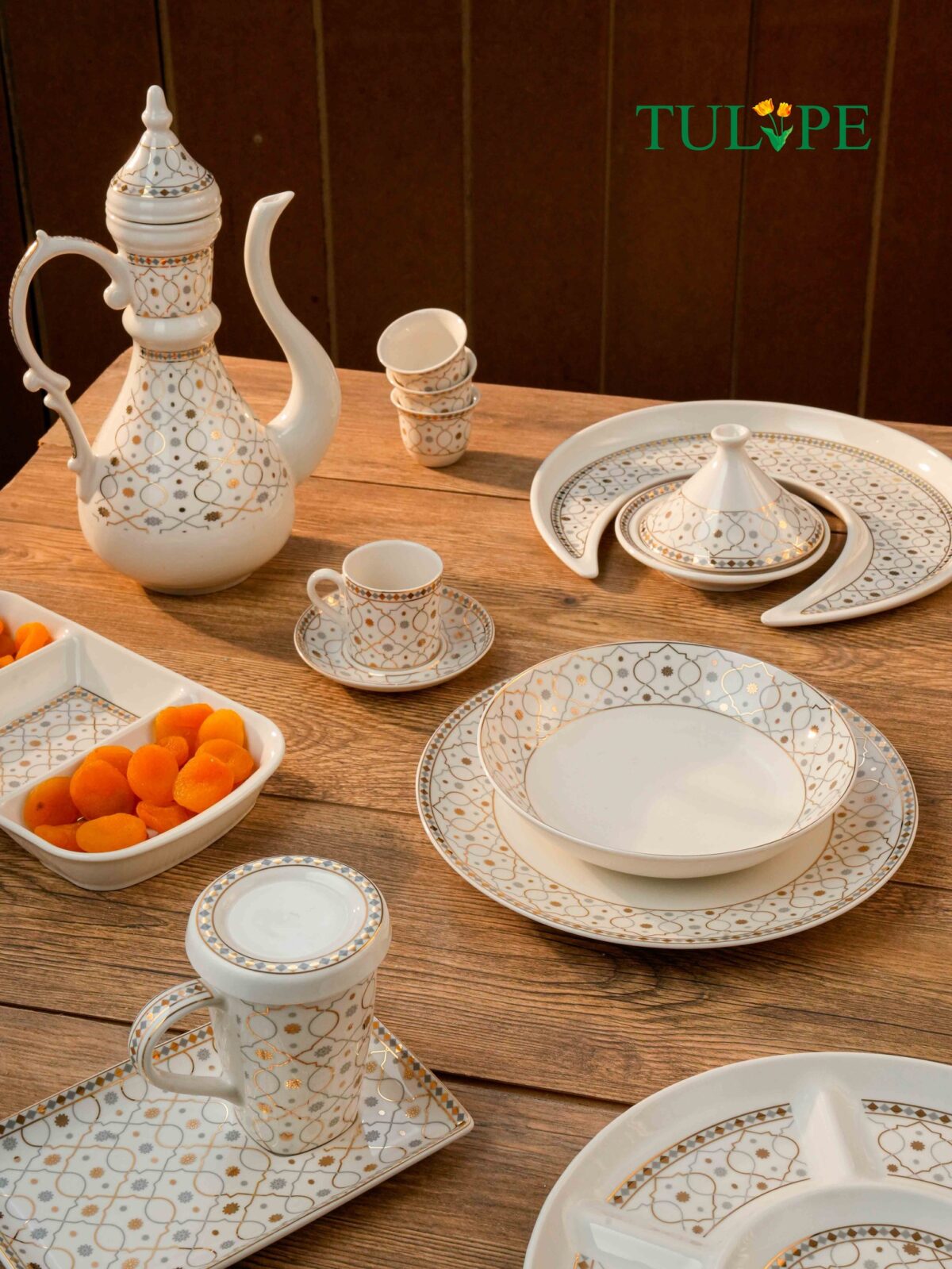 كمان لو بتدوري على أطقم تقديم أنيقة، Tulipe بيقدم مجموعة واسعة من الأطباق، الكاسات، وأطقم الشاي والقهوة بتصميمات شيك تناسب كل الأذواق. الأطقم دي مش بس عملية، لكنها كمان بتضيف لمسة راقية لمائدتك سواء في الاستخدام اليومي أو العزومات.