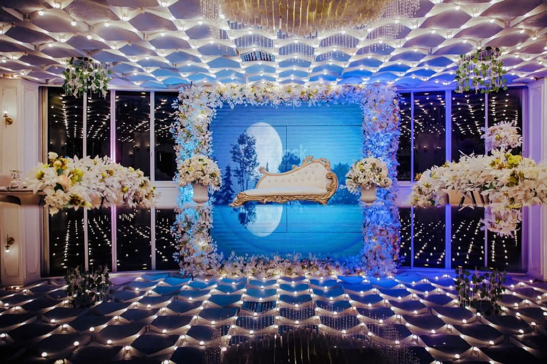 القاعة مجهزة بأحدث أنظمة الصوت والإضاءة اللي بتوفر تجربة صوتية متميزة مع إضاءة متناسقة تناسب كافة الأجواء الاحتفالية