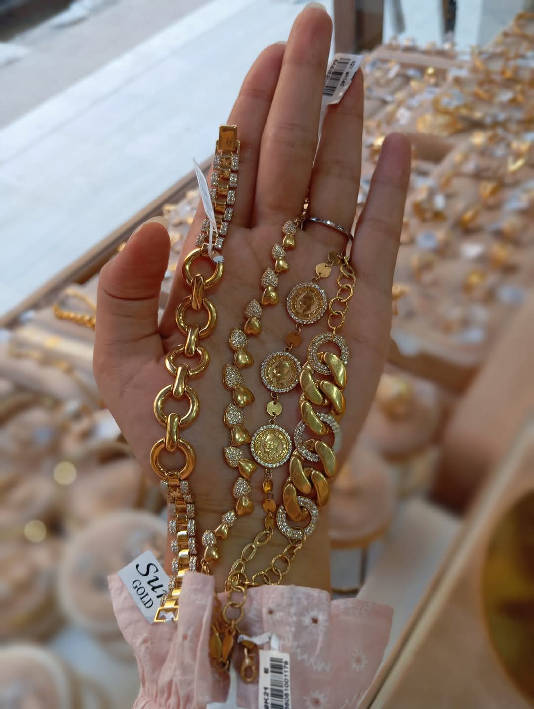 في الصحابة للمجوهرات، هتلاقي مجموعة كبيرة من المجوهرات الذهبية اللي بتناسب كل الأذواق والمناسبات. سواء كنت بتدور على شبكة مثالية للعروسة، طقم زفاف فاخر، أو حتى قطعة ذهبية تضيف لمسة من الجمال لإطلالتك اليومية، المحل بيقدّم تصميمات بتجمع بين الكلاسيكية اللي بتعكس الأناقة والعصرية اللي بتواكب أحدث صيحات الموضة.
