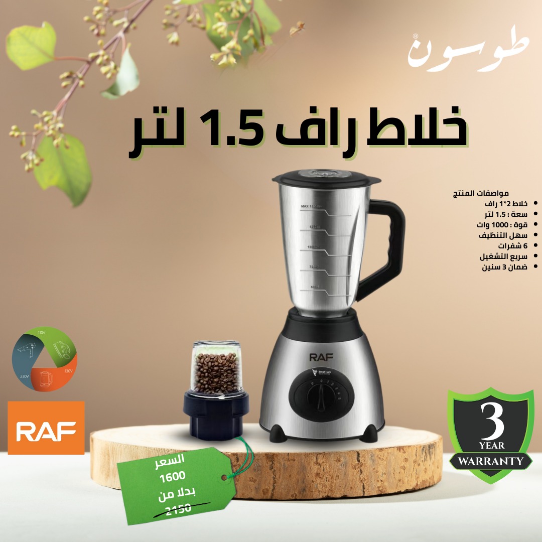 - خلاطات ومحضرات طعام: موتور ١٤٠٠ وات، شفرة تيتانيوم، وأكواب Tritan.