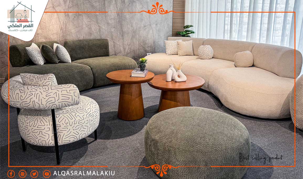 أما غرف المعيشة، فهتلاقي انتريهات وركنات بتصميمات كلاسيكية غنية بالتفاصيل، وتنجيد فاخر بأقمشة مخملية وجلود طبيعية، وألوان ملكية زي الذهبي، النبيتي، والكحلي.
