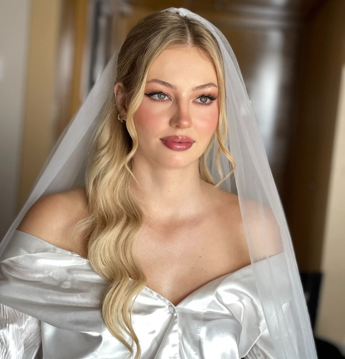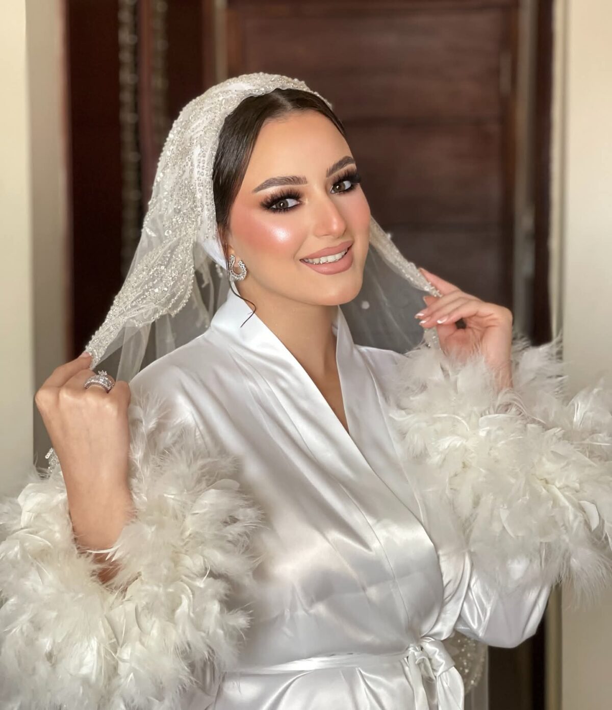 في مكياج العرايس، نور العزاز بتركّز على خطوات تحضير البشرة قبل أي حاجة: تنظيف خفيف، ترطيب مناسب، وبرايمر على حسب نوع بشرتك. بتختار درجة فاونديشن مضبوطة على لون الرقبة علشان الصورة تطلع موحّدة، وتشتغل كونتور وهايلايت بنعومة لتحديد الملامح من غير حِدّة. ظلال العيون بتكون متناسقة مع الفستان والإضاءة، والروج بيتحدد حسب طابع اليوم؛ هادي لو ستايلك كلاسيك، أو أوضح شوية لو حابة تأثير أقوى في الصور.