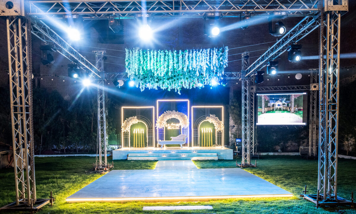 القاعة مجهزة بأحدث أجهزة الصوت والإضاءة اللي تناسب المساحات المفتوحة وتخلي كل لحظة مسموعة وواضحة وجاهزة للتصوير.