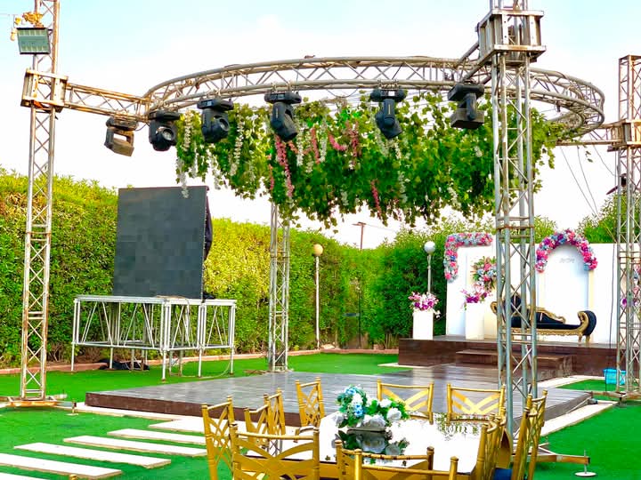 القاعة مجهزة بإضاءة مريحة وعصرية، مع نظام صوت يغطي المكان كويس، وده بيخلي فقرات الحفل واضحة وسلسة.