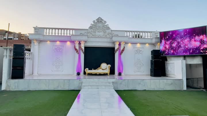 القاعة مجهزة بأحدث أجهزة الصوت والإضاءة، سواء للزفة أو للموسيقى والفقرات المختلفة، وكل حاجة بتكون واضحة ومسموعة كويس.