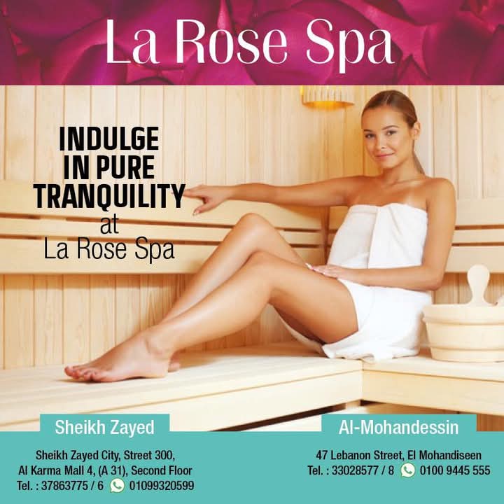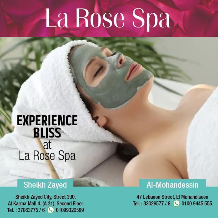 لو نفسك تلاقي مكان راقٍ، هادي، ومريح، تهتمي فيه بجمالك وتدلّعي نفسك بعيد عن زحمة الحياة، يبقى لازم تجربي La Rose Spa في الشيخ زايد. المكان ده معمول علشانك، علشان كل ست تلاقي فيه لحظتها الخاصة… لحظة تهدى فيها، ترتاح، وتخرج بأحلى شكل وأحسن إحساس.