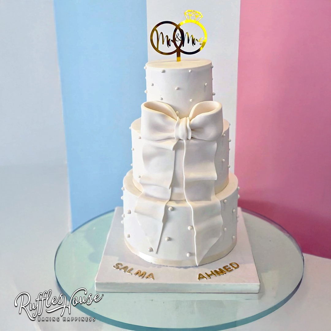 التورتات عند Ruffles House بتتعمل بذوق وإبداع. التصميمات عندهم متنوعة جدًا، من الكلاسيك الراقي اللي فيه أدوار متعددة وألوان هادية، لحد المودرن اللي بيعتمد على أشكال مبتكرة تناسب الحفلات العصرية. الميزة إن كل تورتة بتتعمل مخصوص للعريس والعروسة علشان تعكس شخصيتهم وتكمل ديكور الفرح.
