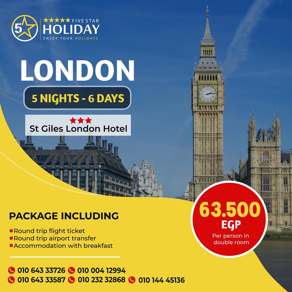 - خدمة العملاء على مدار الساعة: فريق العمل في Five Star Holiday متاح دائمًا لتقديم الدعم والإجابة على استفساراتك وضمان راحتك أثناء الرحلة.