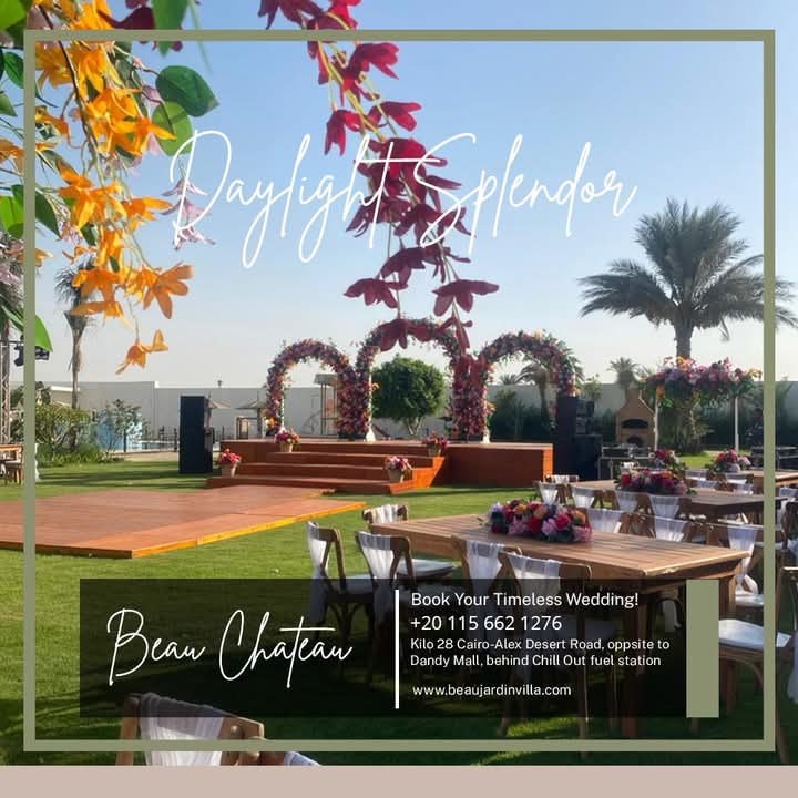 سواء كنت بتخطط لحفل زفاف أو مناسبة خاصة Beau Château بيضمن لك تجربة استثنائية وسط أجواء مميزة تهتم بكل التفاصيل عشان يكون يومك لا يُنسى