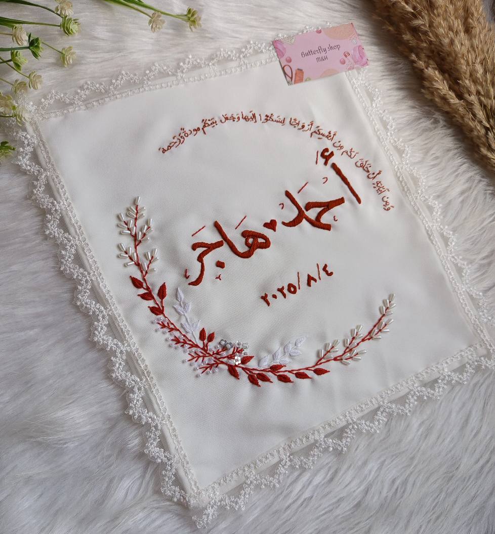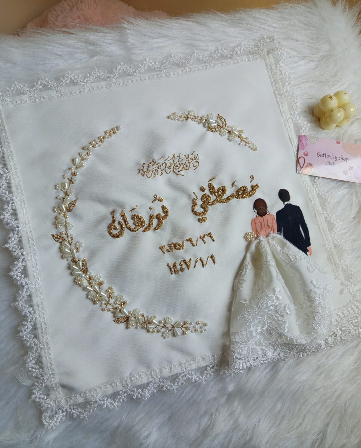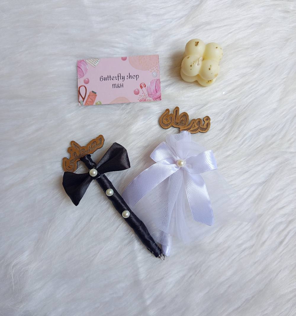 - دبابيس عروسة مكتوب عليها اسمك أو كلمة "عروسة".