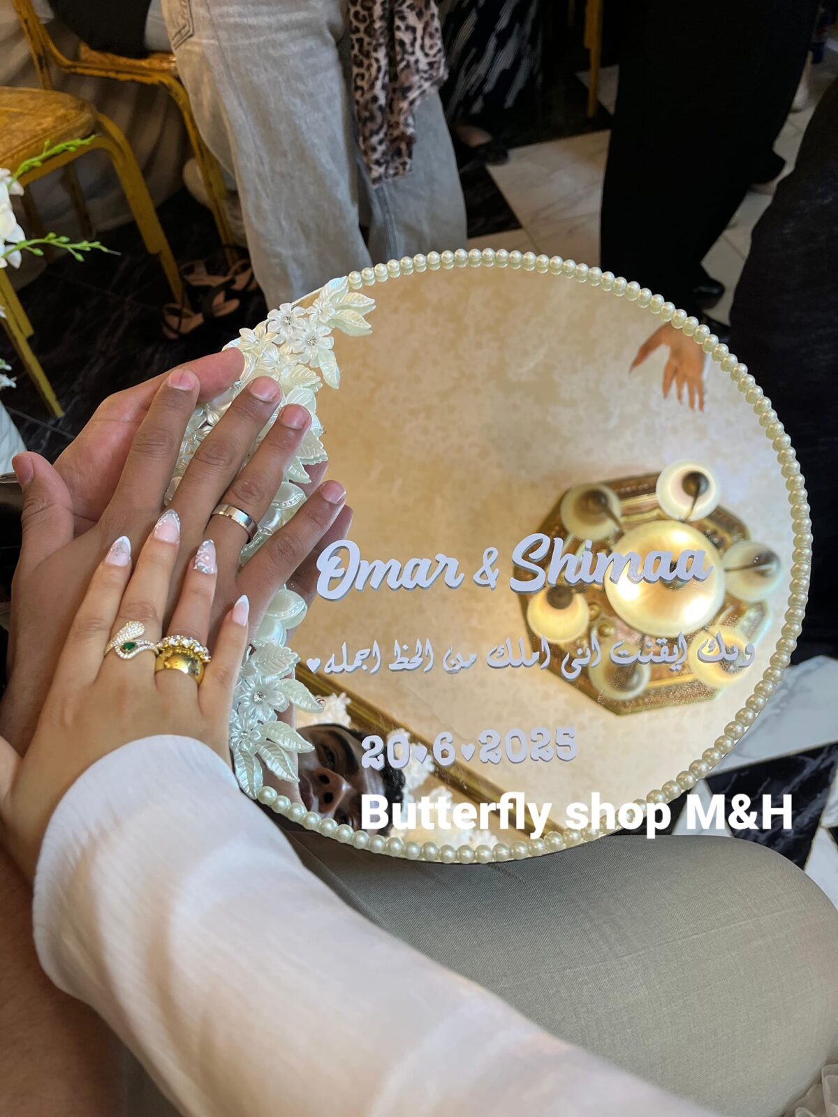 - مرايات محفورة بالليزر عليها اسمك وتاريخك بخط أنيق.