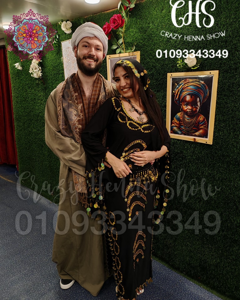 من خدمات Crazy المميزة كمان لبس الحنة اللي بيشمل فساتين كفتان مصممة خصيصًا لليلة الحنة. الفساتين معمولة من أقمشة فاخرة زي الشيفون والساتان مزينة بتطريز يدوي يتناغم مع نقش الحنة بلونين أبيض أو ذهبي. لبس الحنة بيخلي إطلالتك تكمل بعضها فالنقش واللبس يبقوا ألوان متناسقة وتظهر العروسة في أحلى صورة.