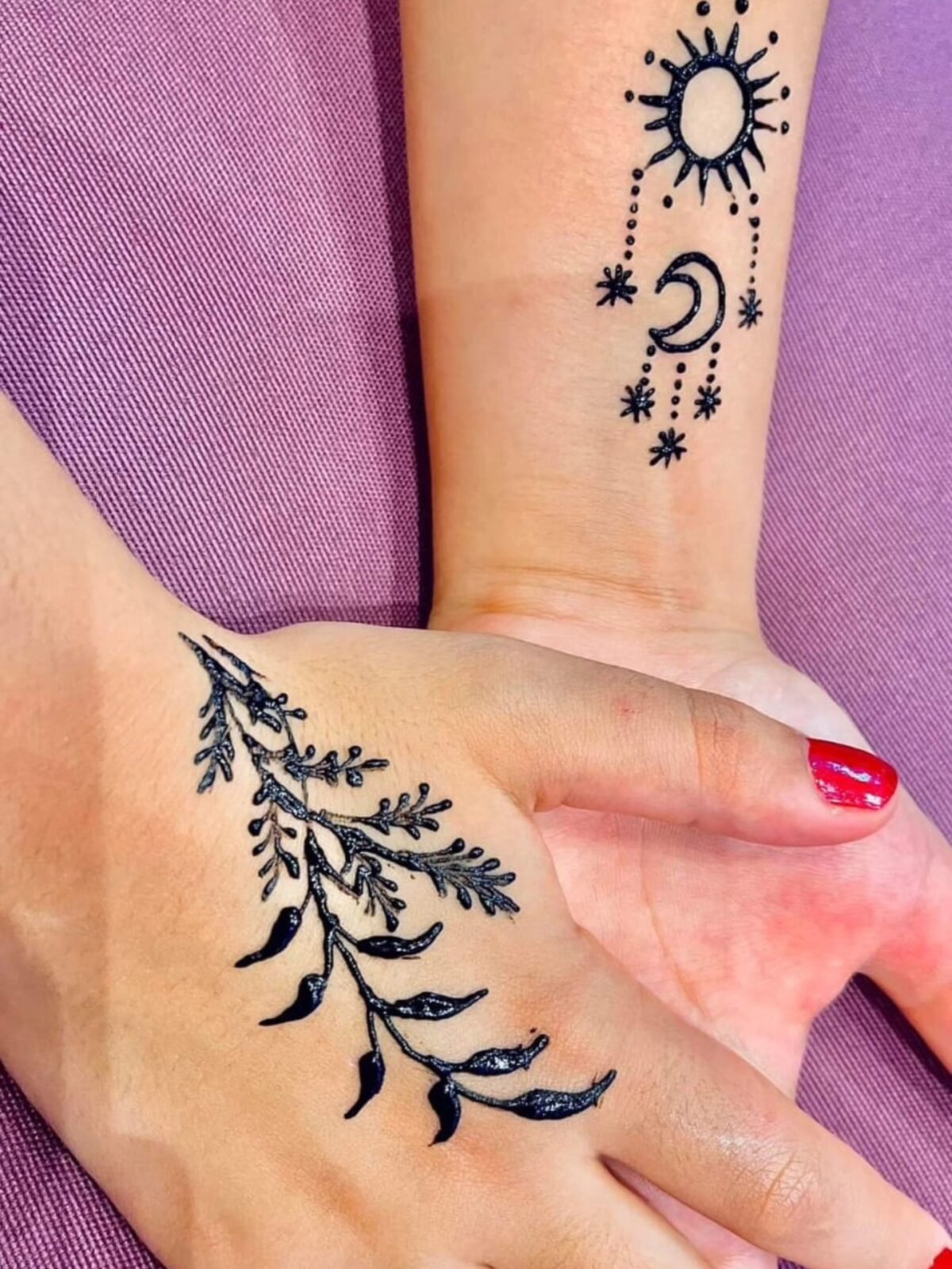لما تيجي مرحلة تجهيز البشرة Crazy بتستخدم أنواع حنة طبيعية ١٠٠٪ بدون اضافات كيماوية عشان تضمن ثبات اللون وسلامة بشرتك. قبل الاستخدام بيتم اختبار بسيط للحنة على جزء صغير من اليد للتأكد من عدم وجود حساسية حتى لأصحاب البشرة الحساسة. بعدها المنطقة اللي هننقشها بتتنضف كويس وتتدهن بكريم مرطب خفيف عشان اللون يمسك صح ويظهر غامق بعد ما ينشف.