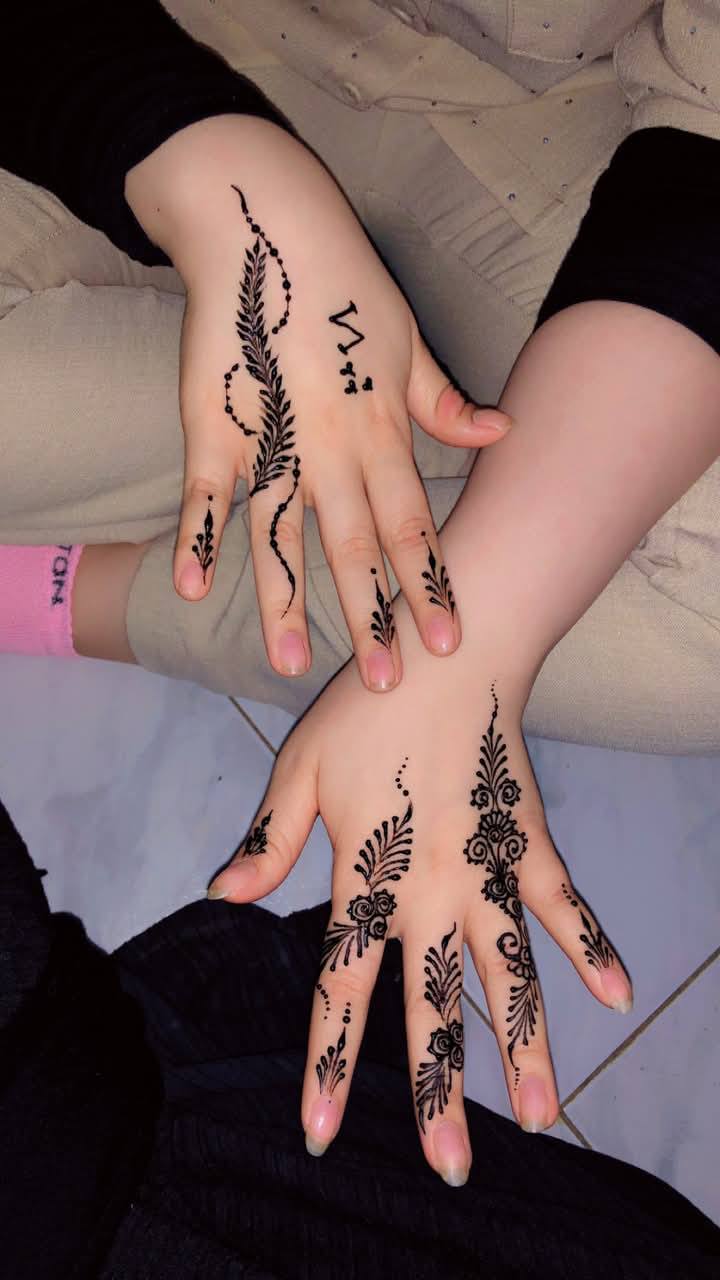الرسم بياخد وقته المناسب على حسب حجم وتعقيد التصميم، وغالبًا بيستغرق من ساعة ونص لحد تلات ساعات. الرسامة بترسم الأول الخطوط الرئيسية وبعدها بتملأ المساحات بزخارف دقيقة. وفي الآخر ممكن تضيف لمسات بسيطة زي بودرة دهبي أو لمعة جل عشان النقش يبان أوضح في الصور والفيديو.