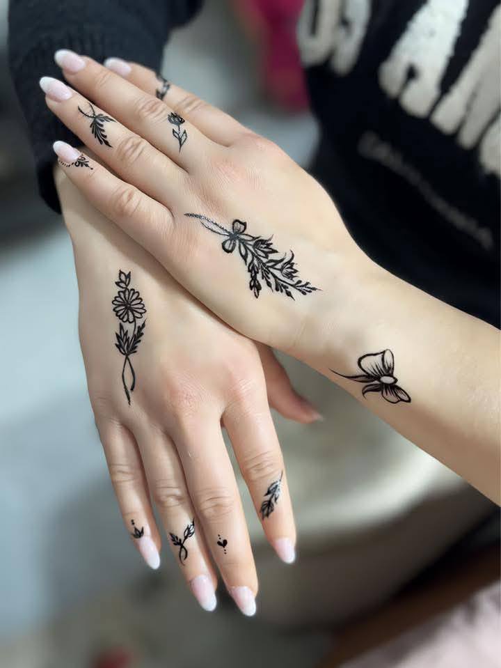 التجربة مع Spa Roka بتبدأ قبل الليلة بجلسة استشارية بسيطة، فيها الرسامة بتتعرف على ذوقك في النقوش، ألوان فستانك، والإكسسوارات اللي ناوية تلبسيها. على الأساس ده بيتحدد شكل النقش اللي يليق بيكي سواء كان شرقي رقيق، زخارف مغربية هندسية، أو نقوش هندية مليانة ورود وخطوط دقيقة. كل رسمة بتتعمل مخصوص ليكي عشان تبقي مختلفة ومميزة.